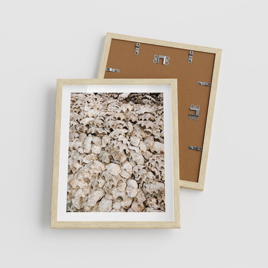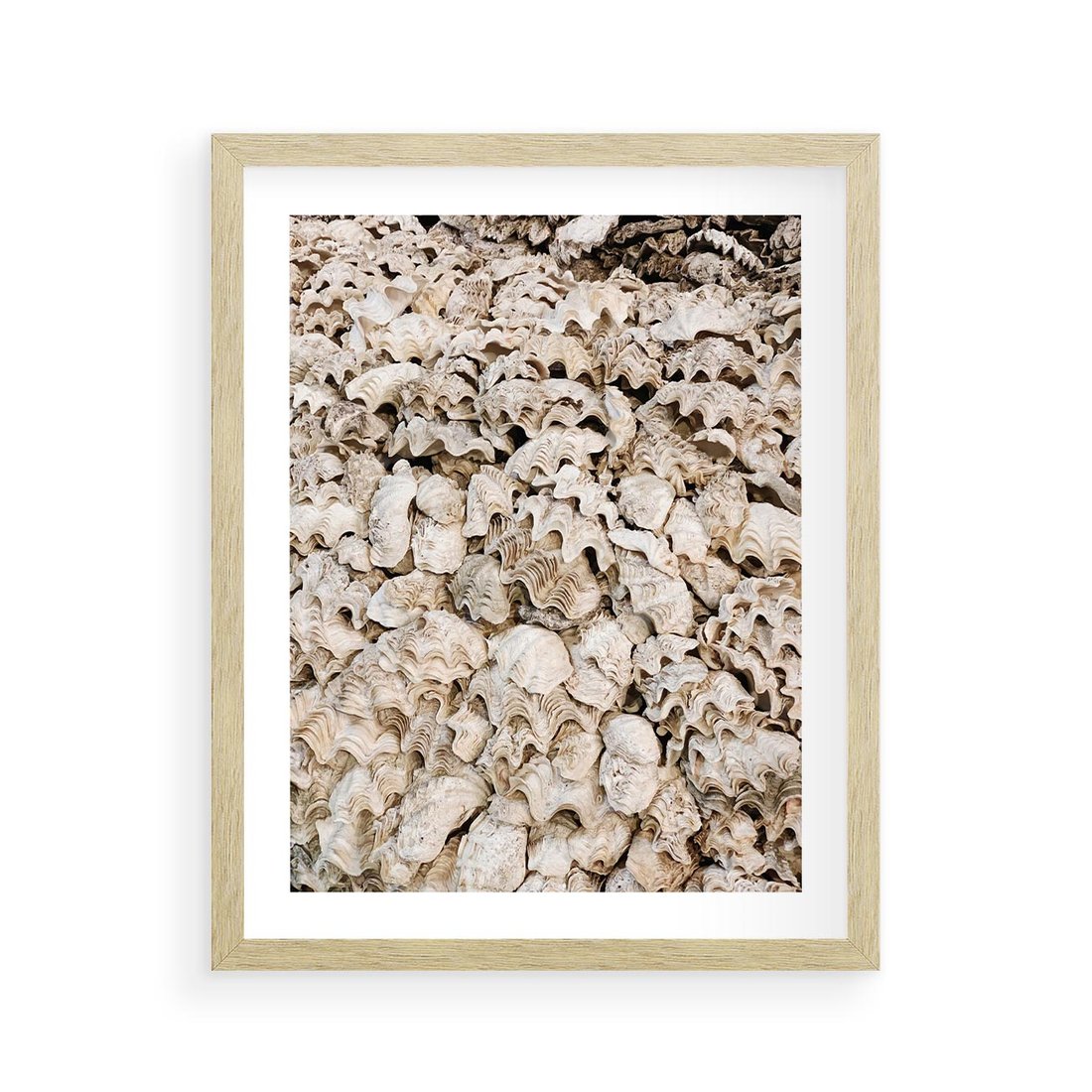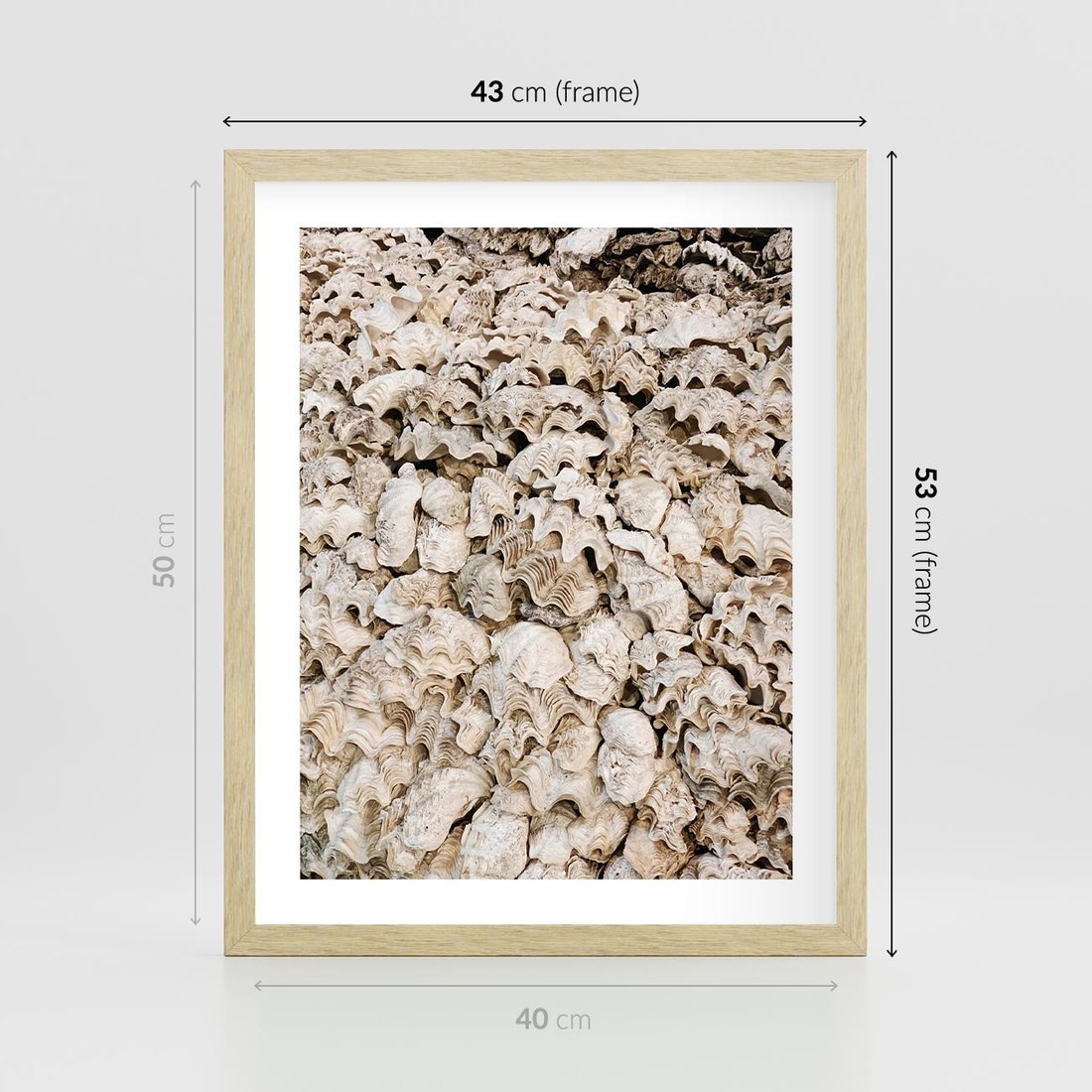Plakat w ramie 40x50 - Symfonia Natury - kompozycja z białych muszli - rama drewno