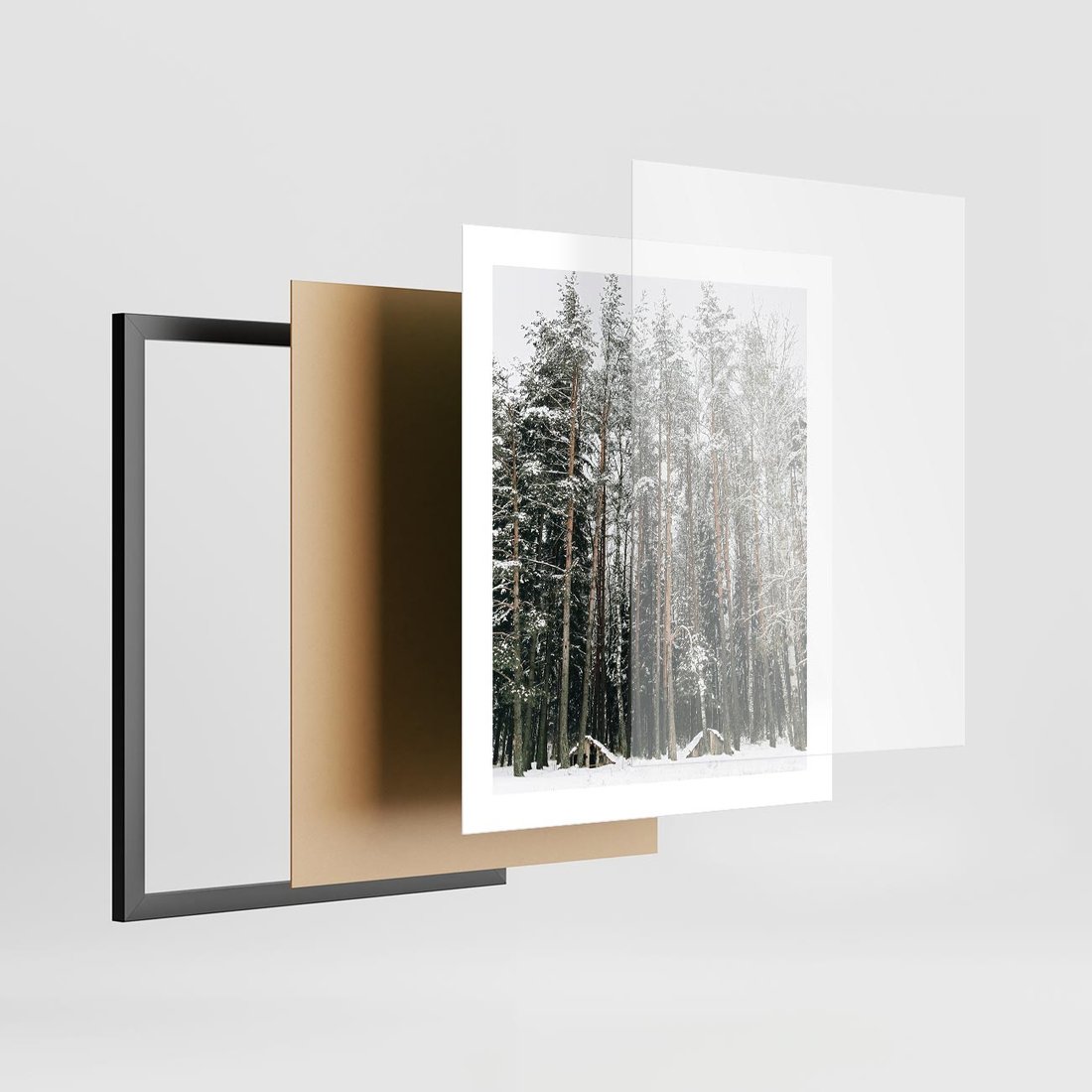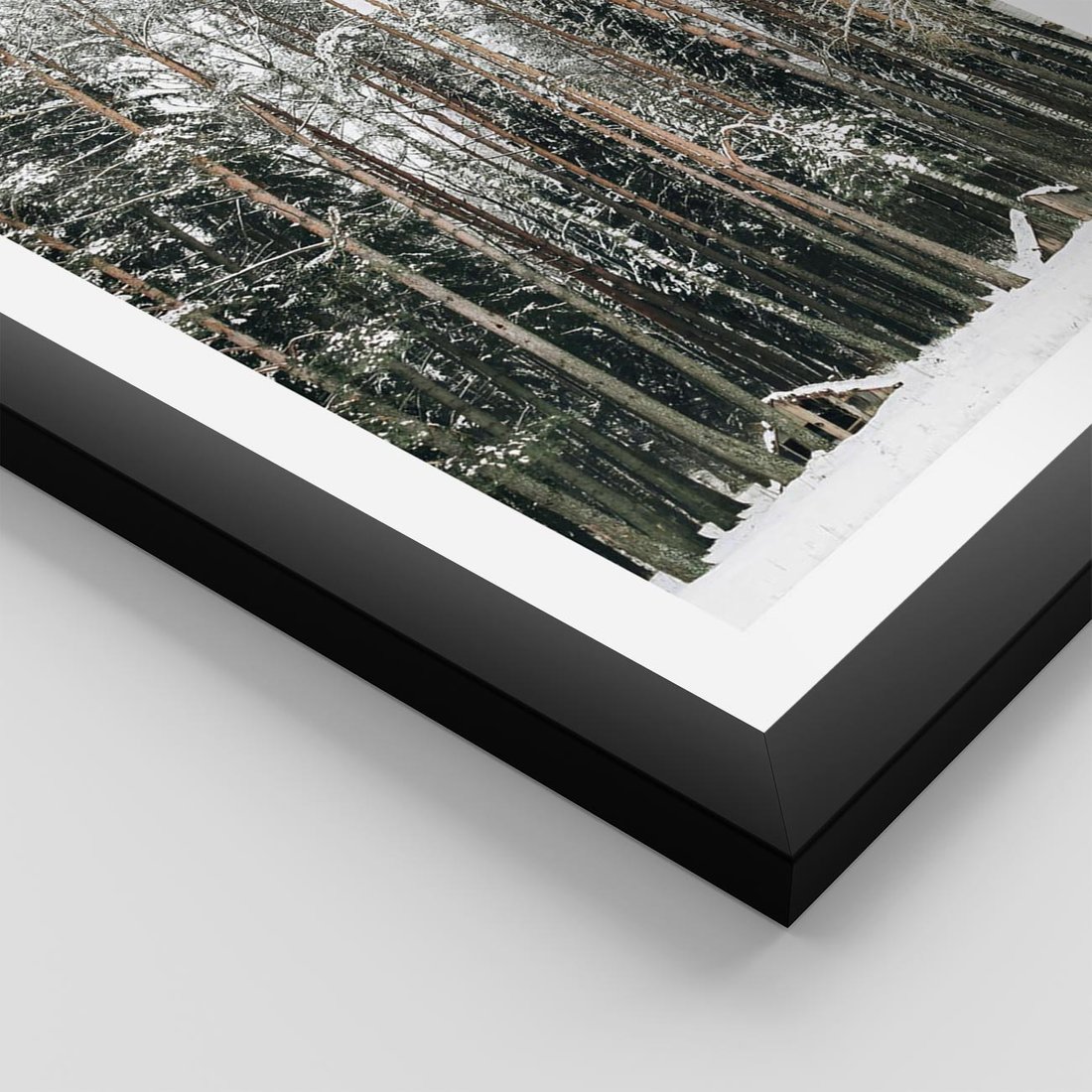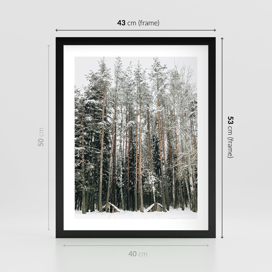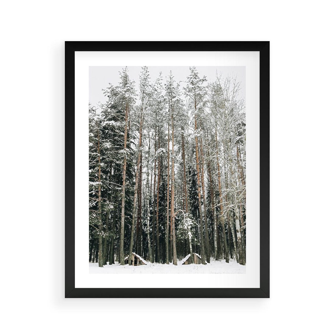 Plakat w ramie 40x50 - Sypiący Śnieg - las w zimie, drzewa pod śniegiem - rama czarna