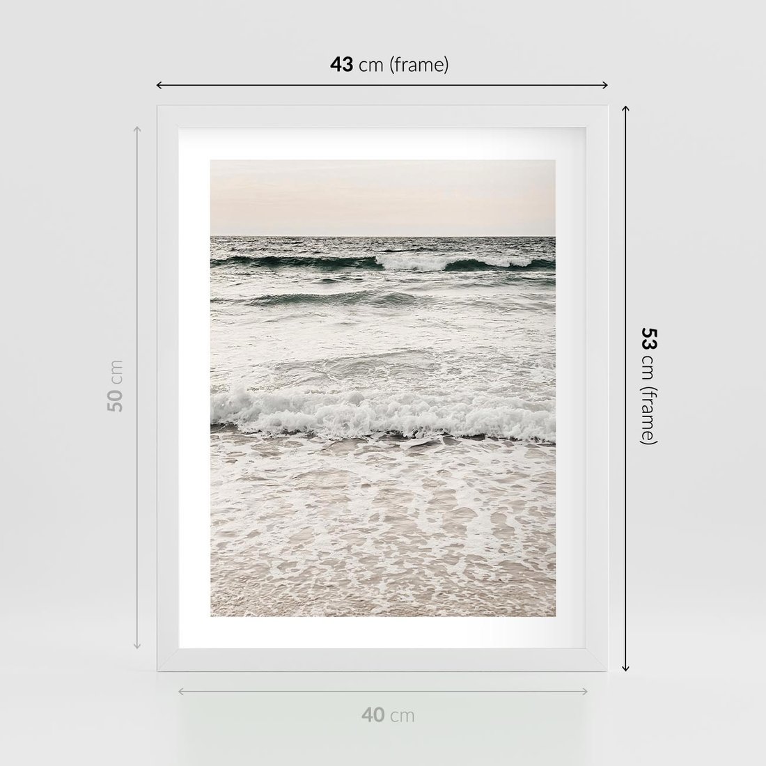 Plakat w ramie 40x50 - Szarość Morza - morze, fale - rama biała