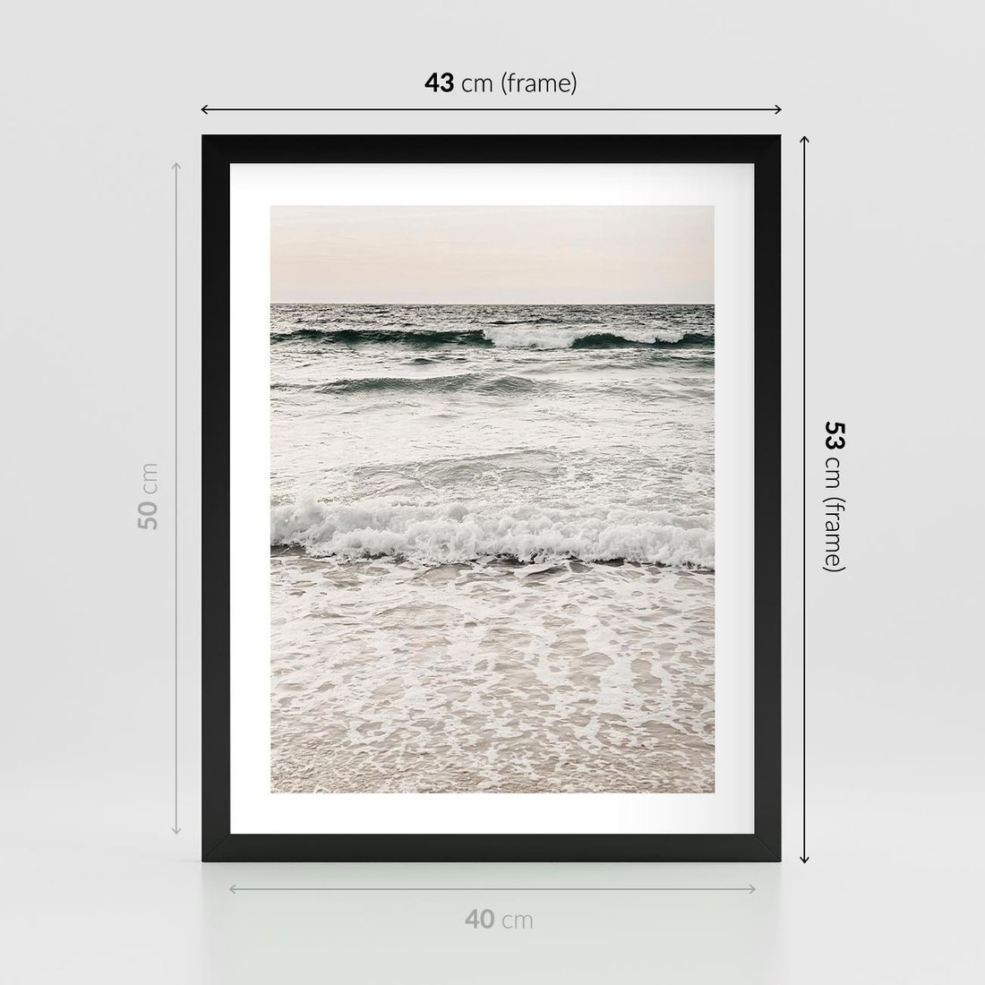 Plakat w ramie 40x50 - Szarość Morza - morze, fale - rama czarna