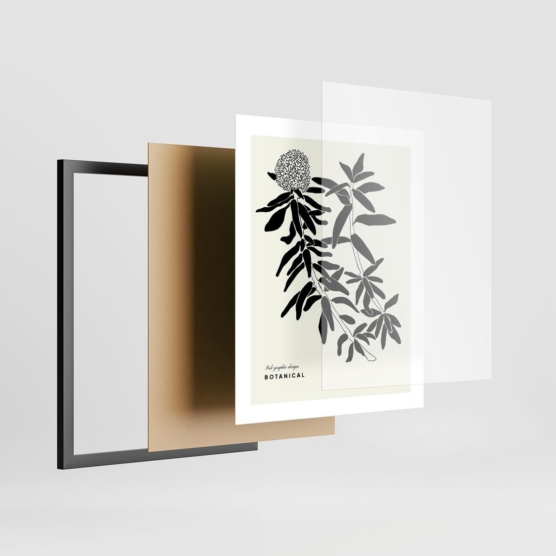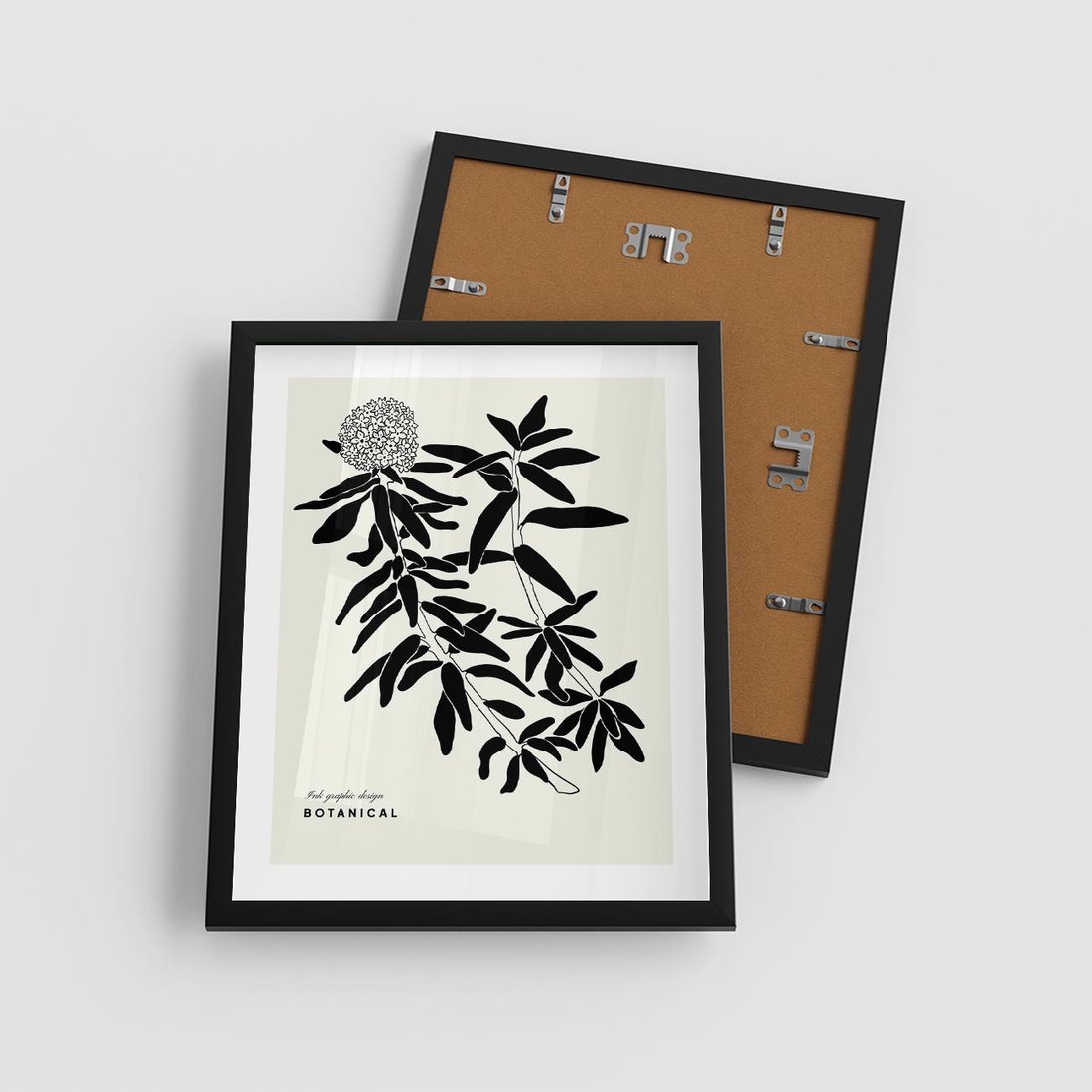 Czarne i białe grafiki ukazują piękno roślinności i liści w minimalistycznym stylu. Ożywiający obraz roślinnych motywów oraz delikatnych kwiatów wkomponowanych w prostą formę. To minimalistyczne dzieło sztuki jest doskonałym wyborem dla miłośników natury, pragnących wnieść subtelny akcent roślinności do swojego wnętrza, utrzymując jednocześnie estetykę minimalizmu.