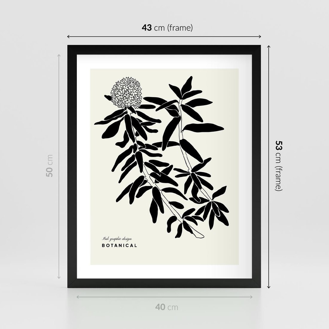 Plakat w ramie 40x50 - Szept kwiatowej wyobraźni - czarno biała grafika, roślinność - rama czarna