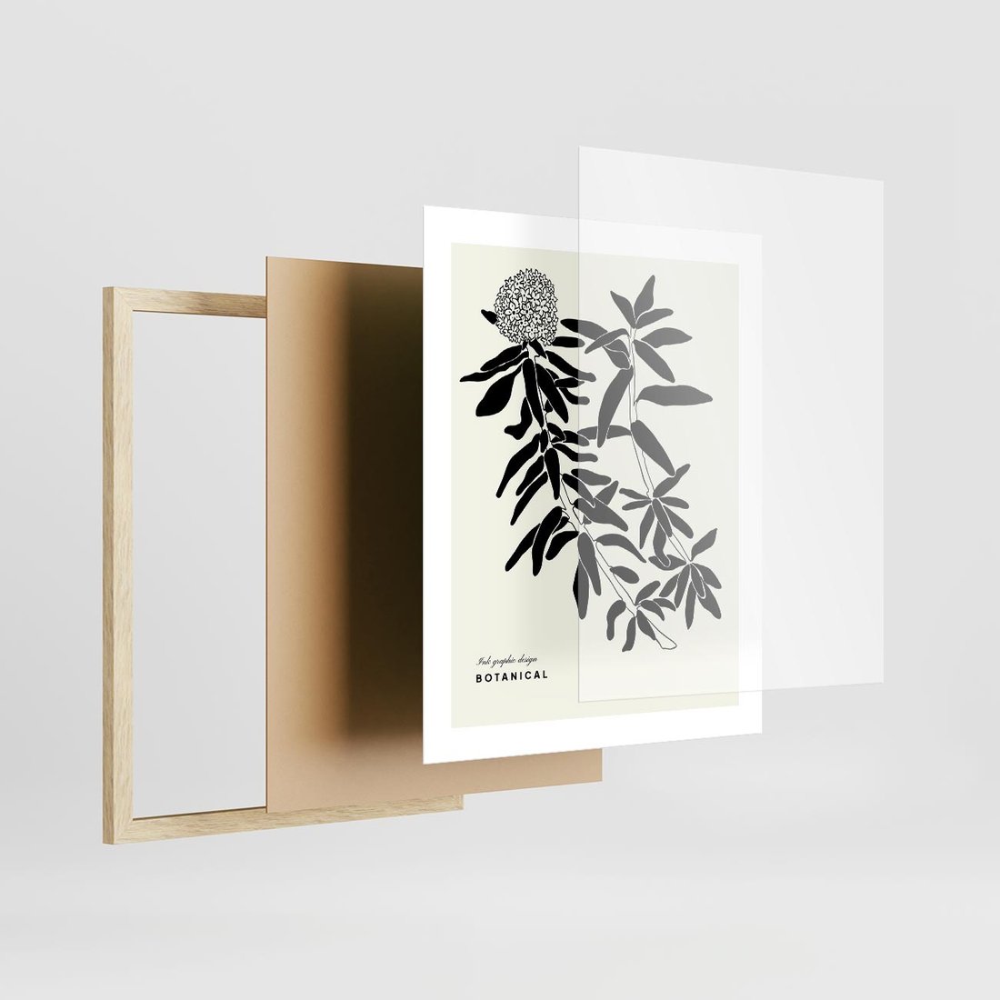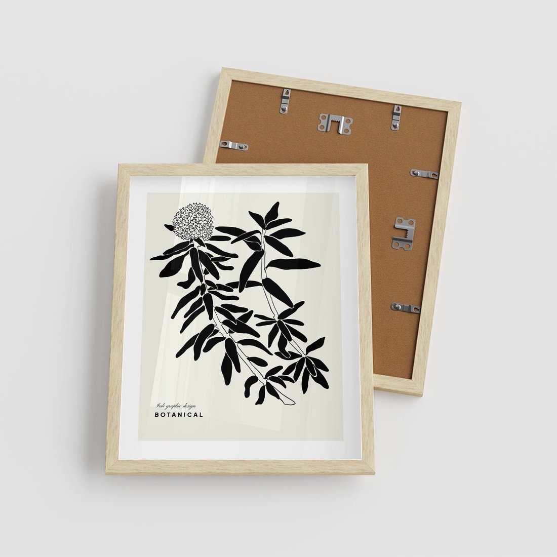 Czarne i białe grafiki ukazują piękno roślinności i liści w minimalistycznym stylu. Ożywiający obraz roślinnych motywów oraz delikatnych kwiatów wkomponowanych w prostą formę. To minimalistyczne dzieło sztuki jest doskonałym wyborem dla miłośników natury, pragnących wnieść subtelny akcent roślinności do swojego wnętrza, utrzymując jednocześnie estetykę minimalizmu.