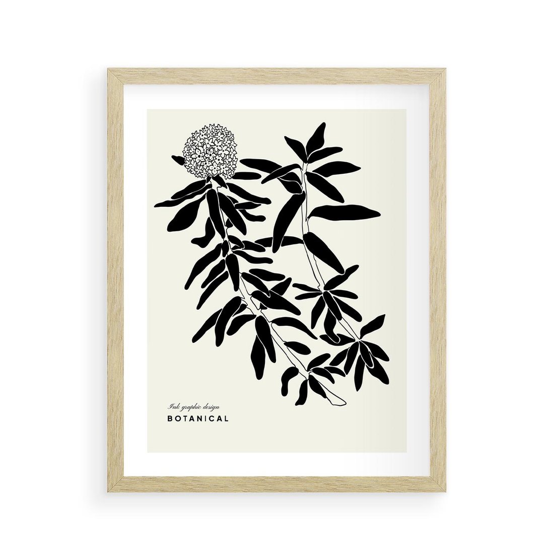 Plakat w ramie 40x50 - Szept kwiatowej wyobraźni - czarno biała grafika, roślinność - rama drewno