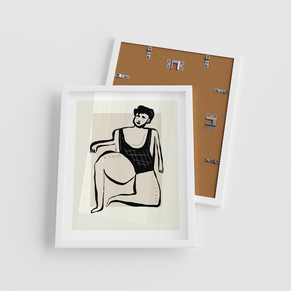 Plakat w ramie 40x50 - Szkic Kobiety w Czerni i Bieli - grafika, modern - rama biała