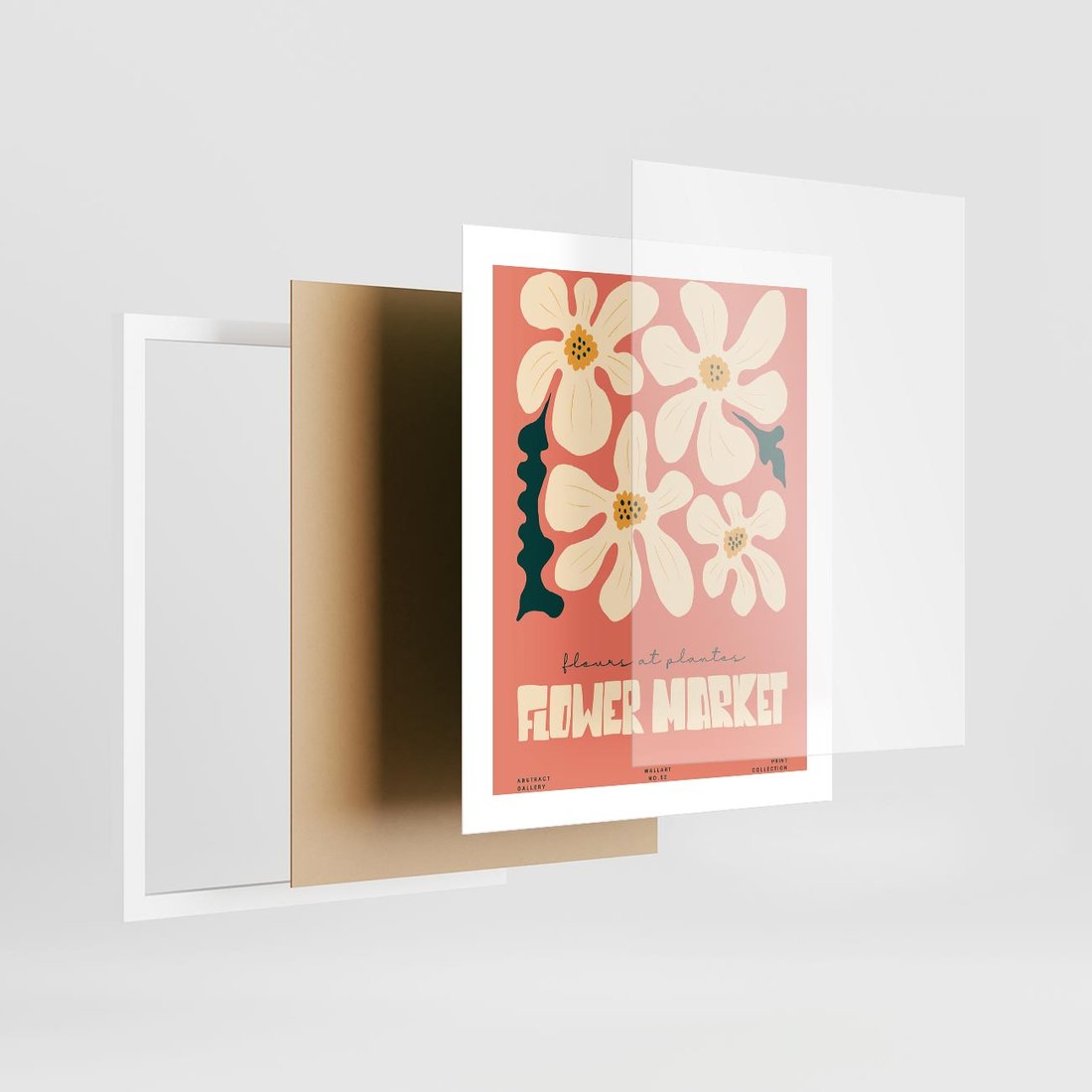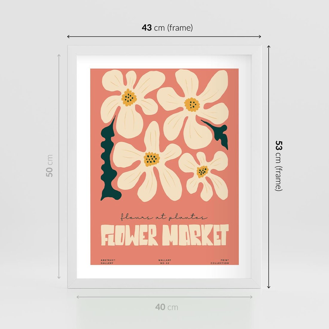 Plakat w ramie 40x50 - Szkicowane Kolorowe Uczucia - kwiatowa kompozycja, minimalizm - rama biała