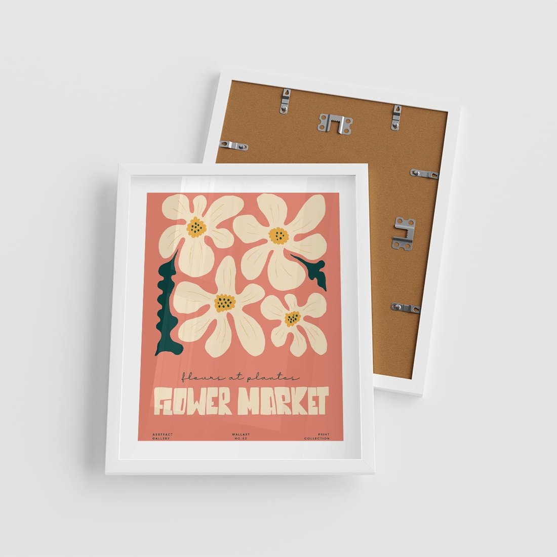 Ta kwiatowa kompozycja w minimalistycznym stylu prezentuje białe kwiaty na delikatnym różowym tle, z subtelnie umieszczoną typografią. To obraz, który doskonale łączy prostotę, piękno natury i estetykę typografii. Wprowadzi do wnętrza subtelny akcent kwiatowy, podkreślając równocześnie elegancję i spokój minimalistycznego designu.