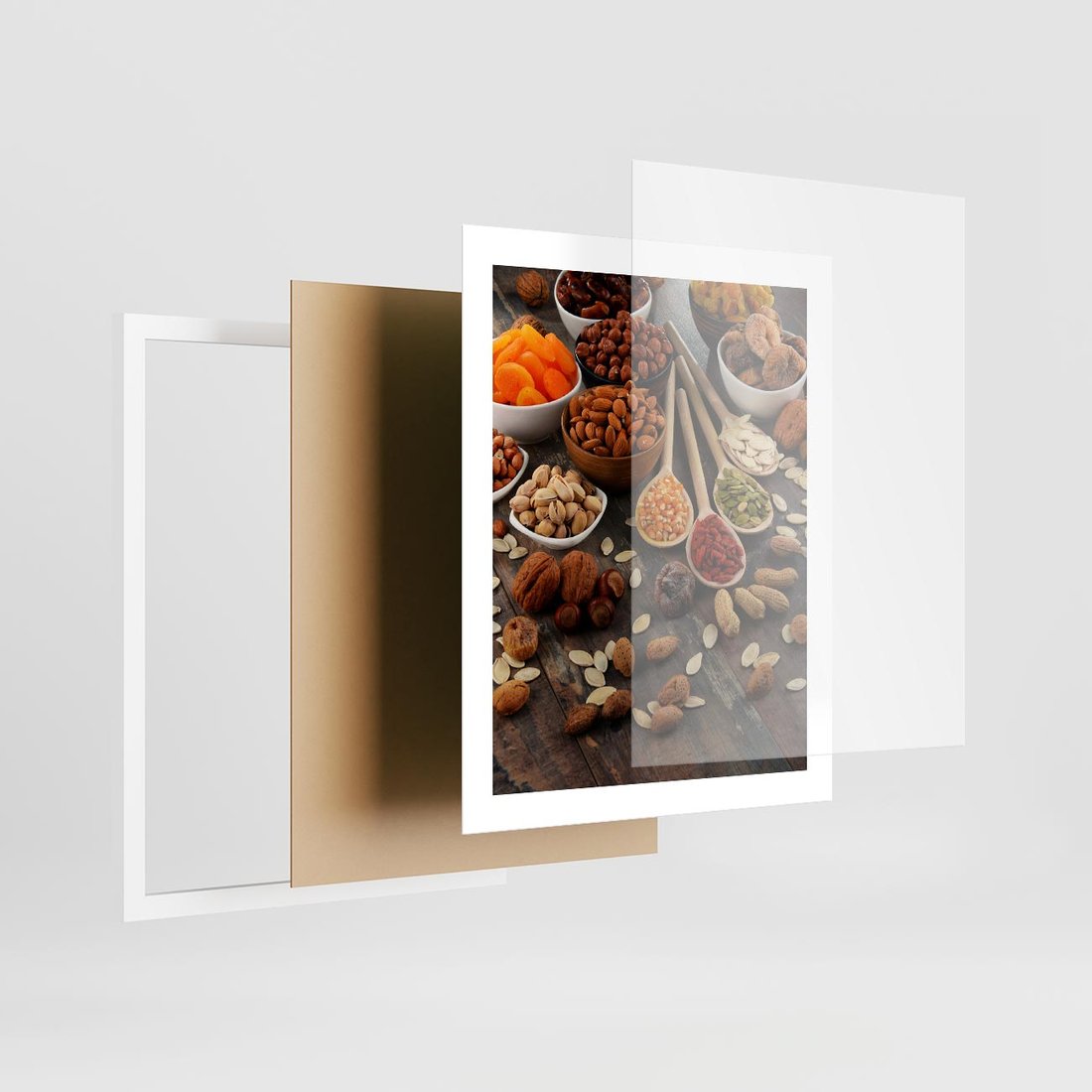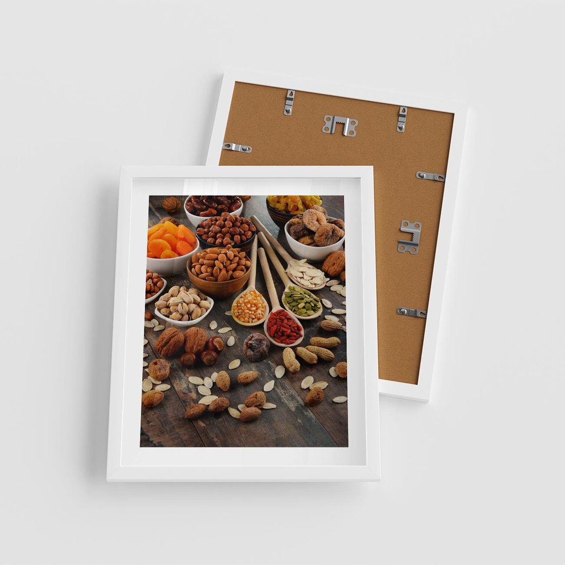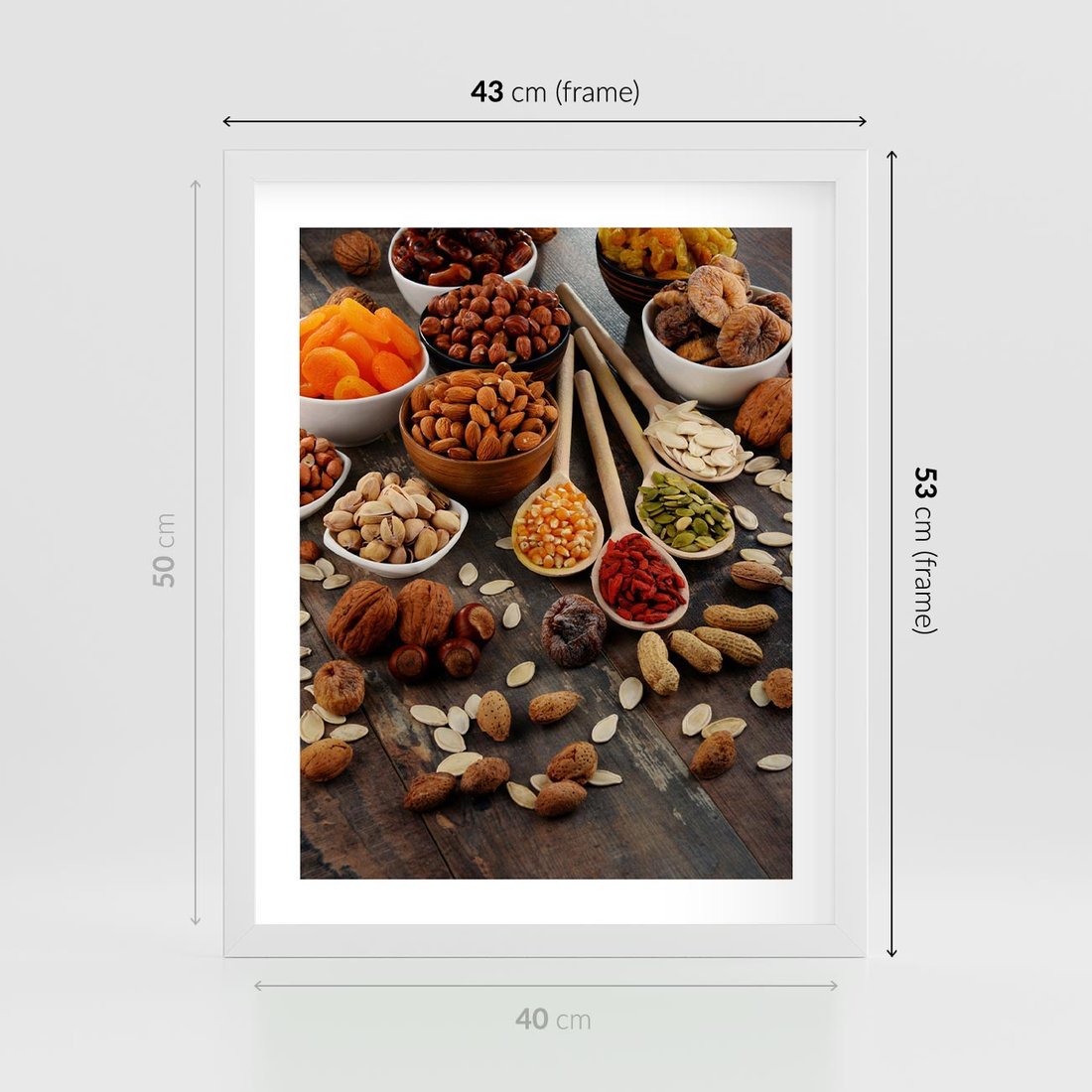 Plakat w ramie 40x50 - Szlachetne smaki kuchni - nasiona, bakalie - rama biała