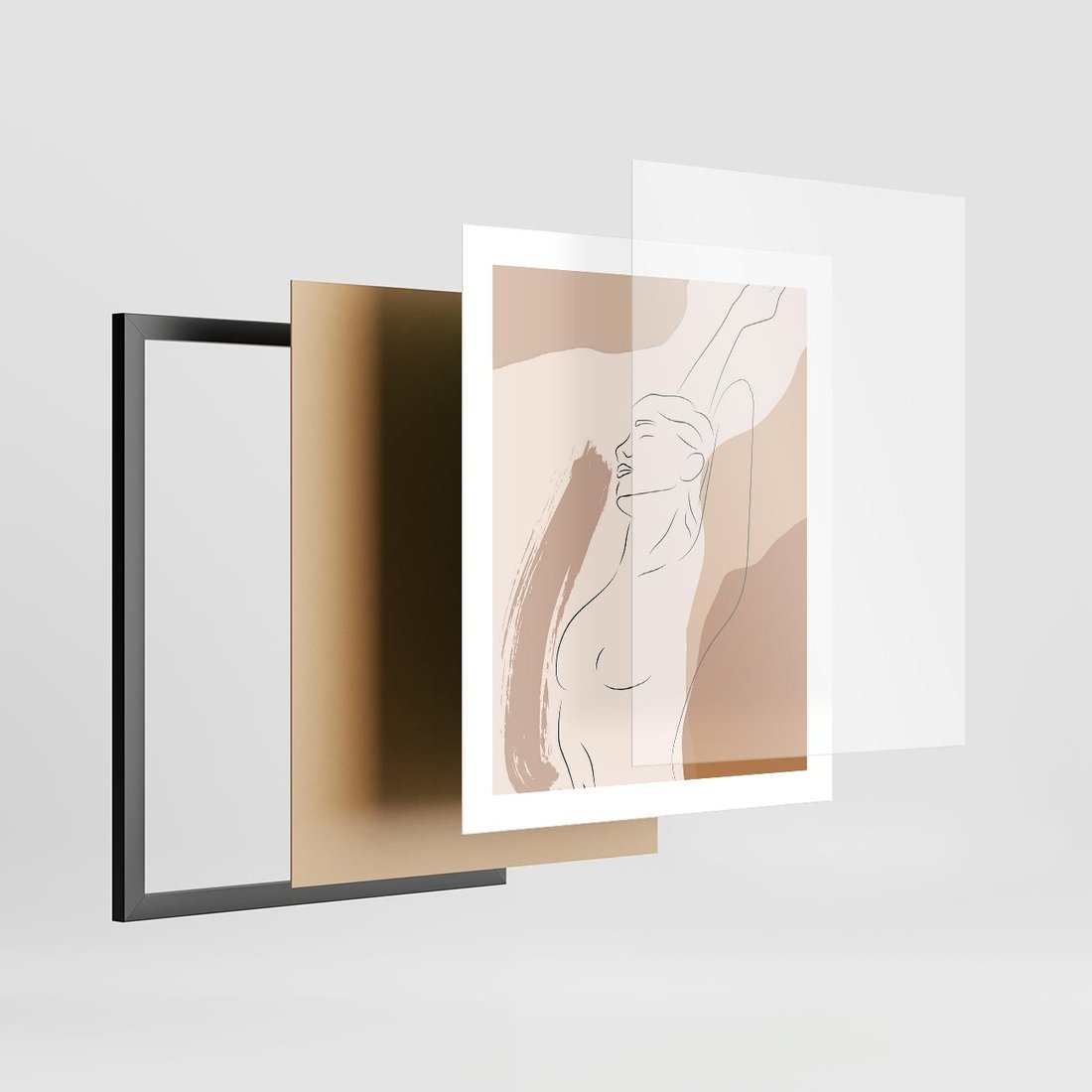 Plakat w ramie 40x50 - Sztuka Nagiej Formy - szkic nagiej kobiety, kolory beżowe - rama czarna
