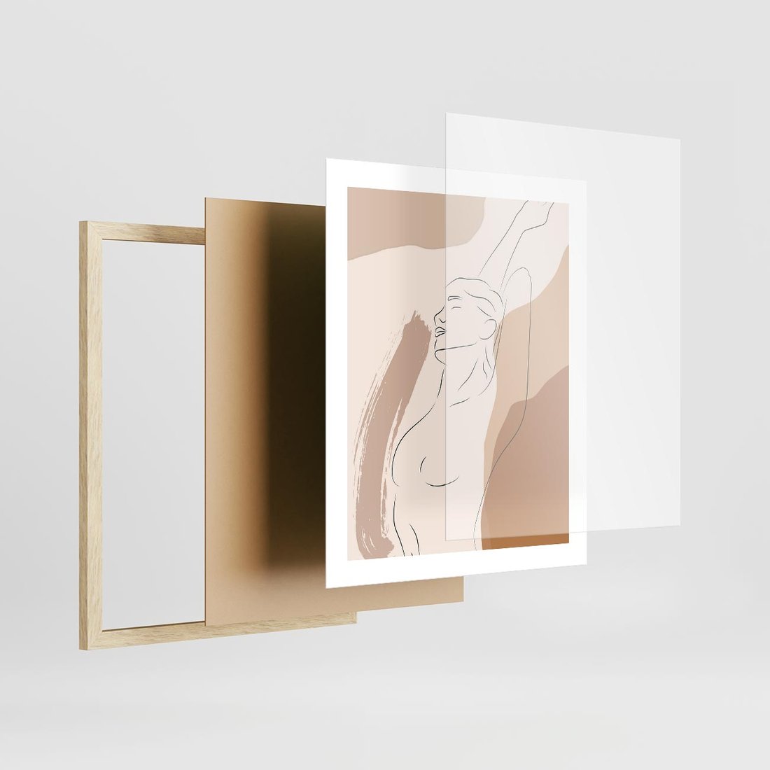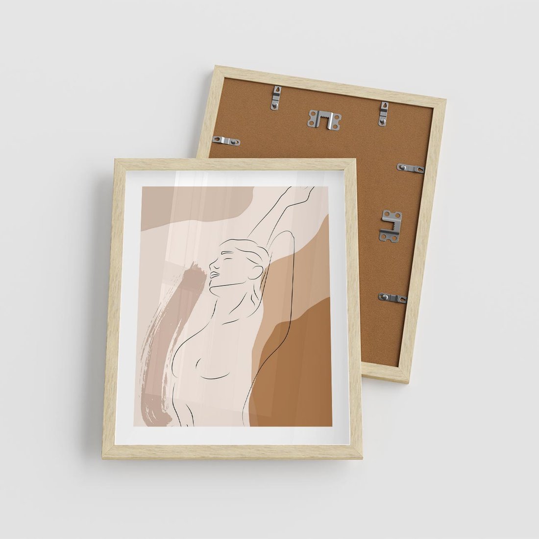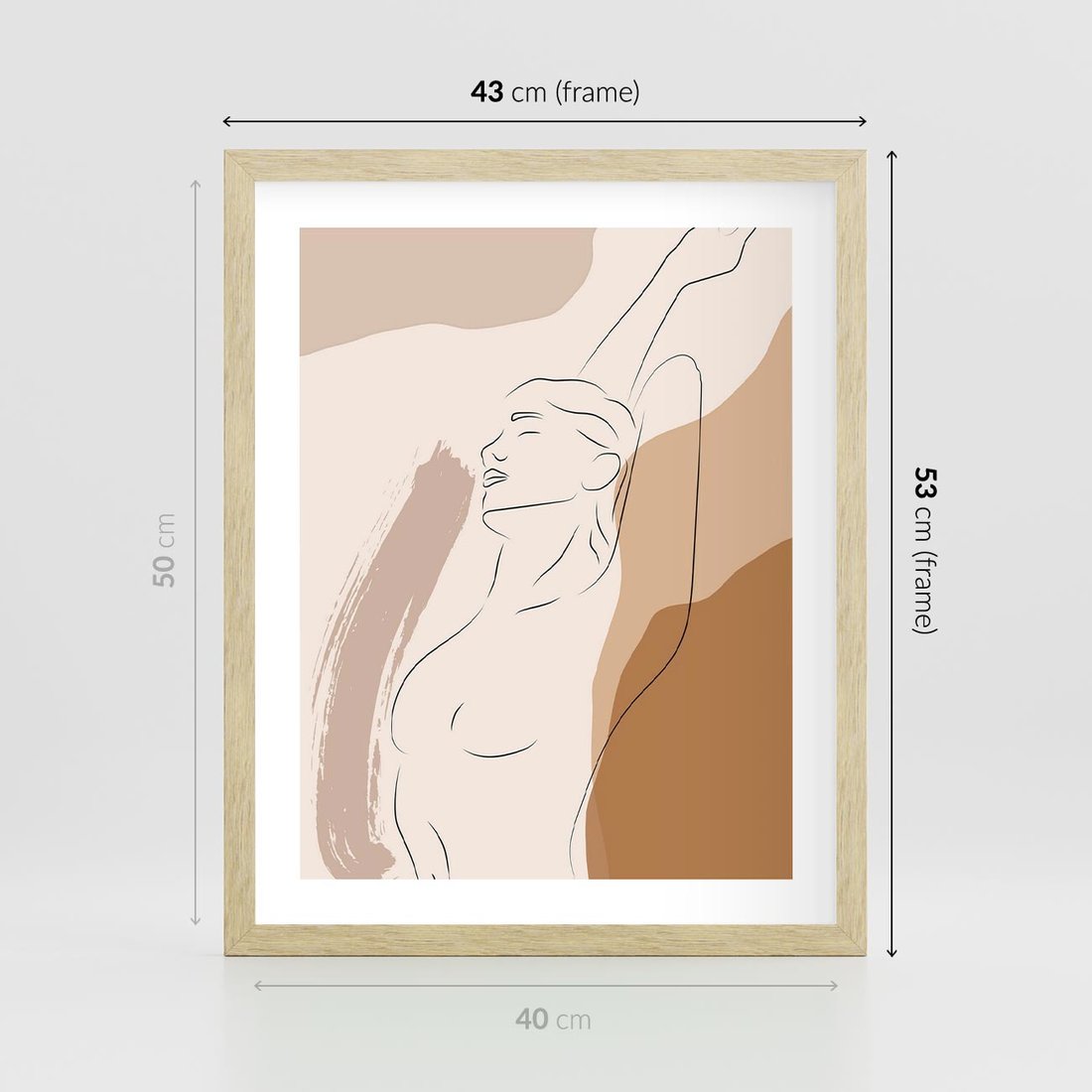 Plakat w ramie 40x50 - Sztuka Nagiej Formy - szkic nagiej kobiety, kolory beżowe - rama drewno