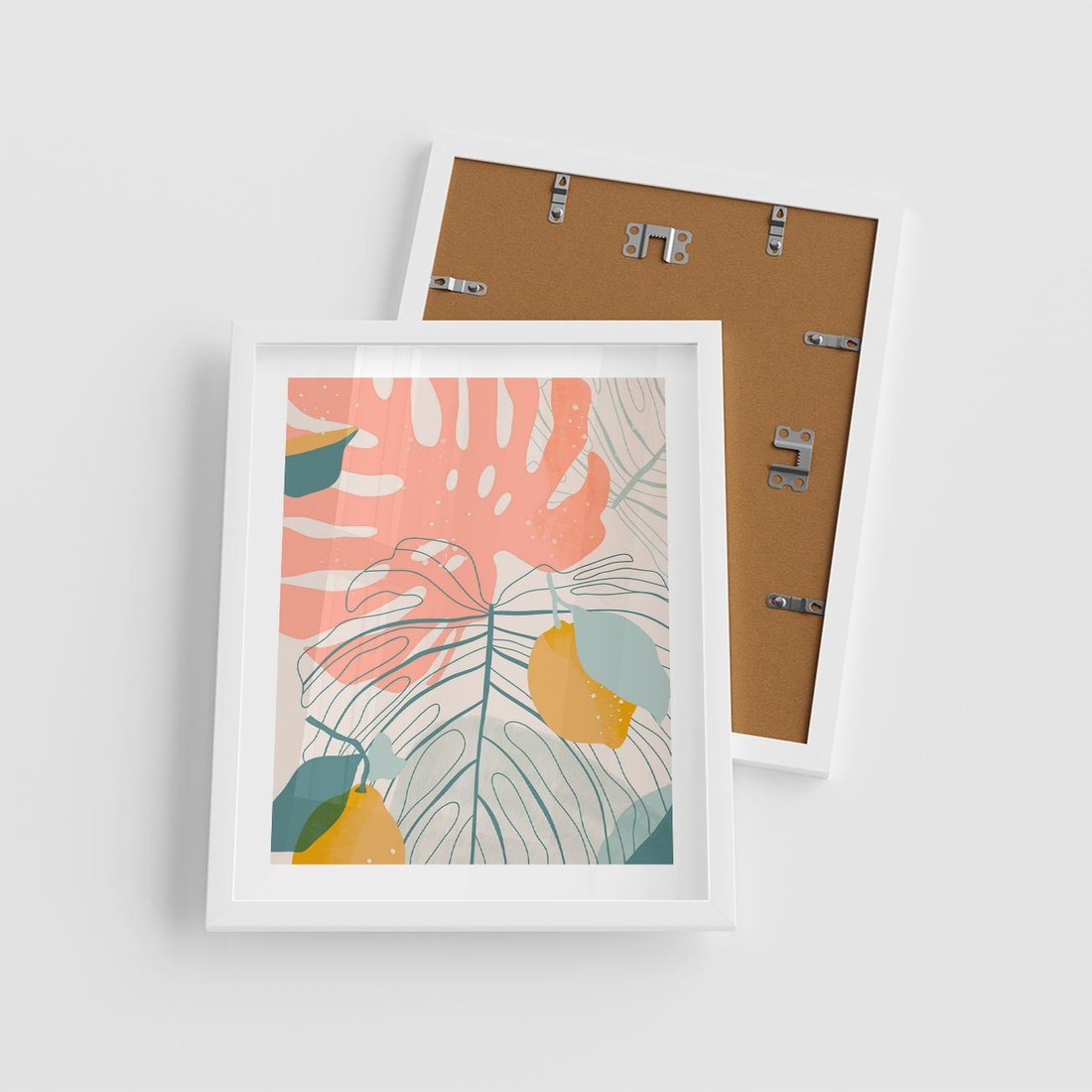 Plakat w ramie 40x50 - Sztuka Natury: Liście Monstery w Pastelach - nowoczesna grafika, pastelowe liście monstery - rama biała