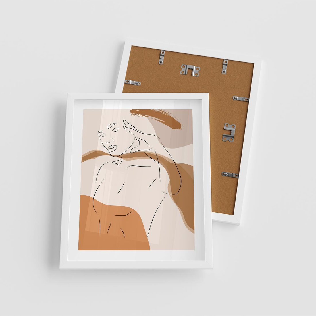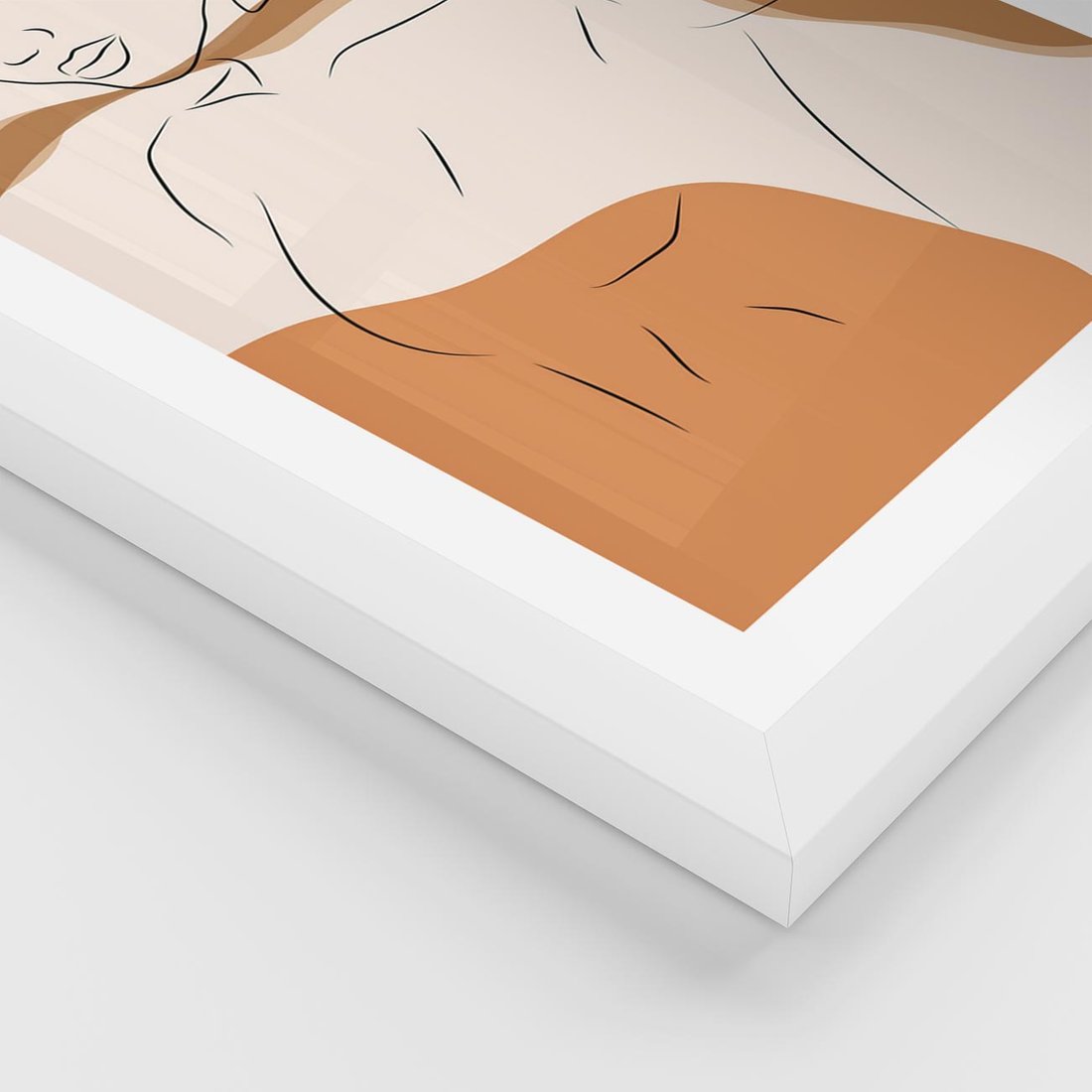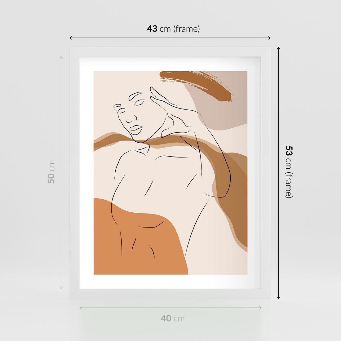 Plakat w ramie 40x50 - Sztuka Piękna w Beżach i Brązach - szkic jedną linią, naga kobieta - rama biała