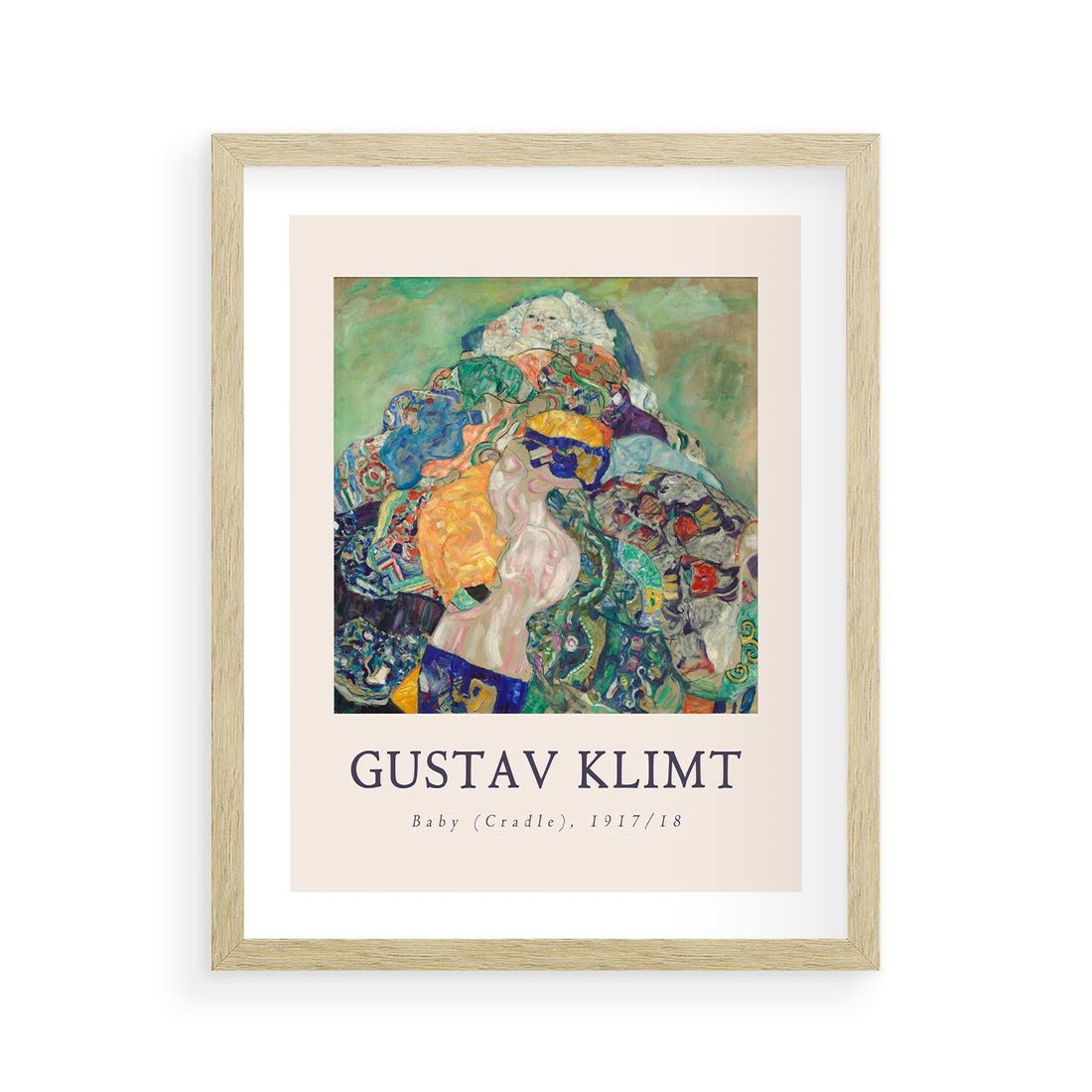 Reprodukcja dzieła "Dziecko" autorstwa Gustava Klimta z dodatkiem typografii. Obraz ten ukazuje charakterystyczny styl artysty i jest uzupełniony odpowiednią typografią.