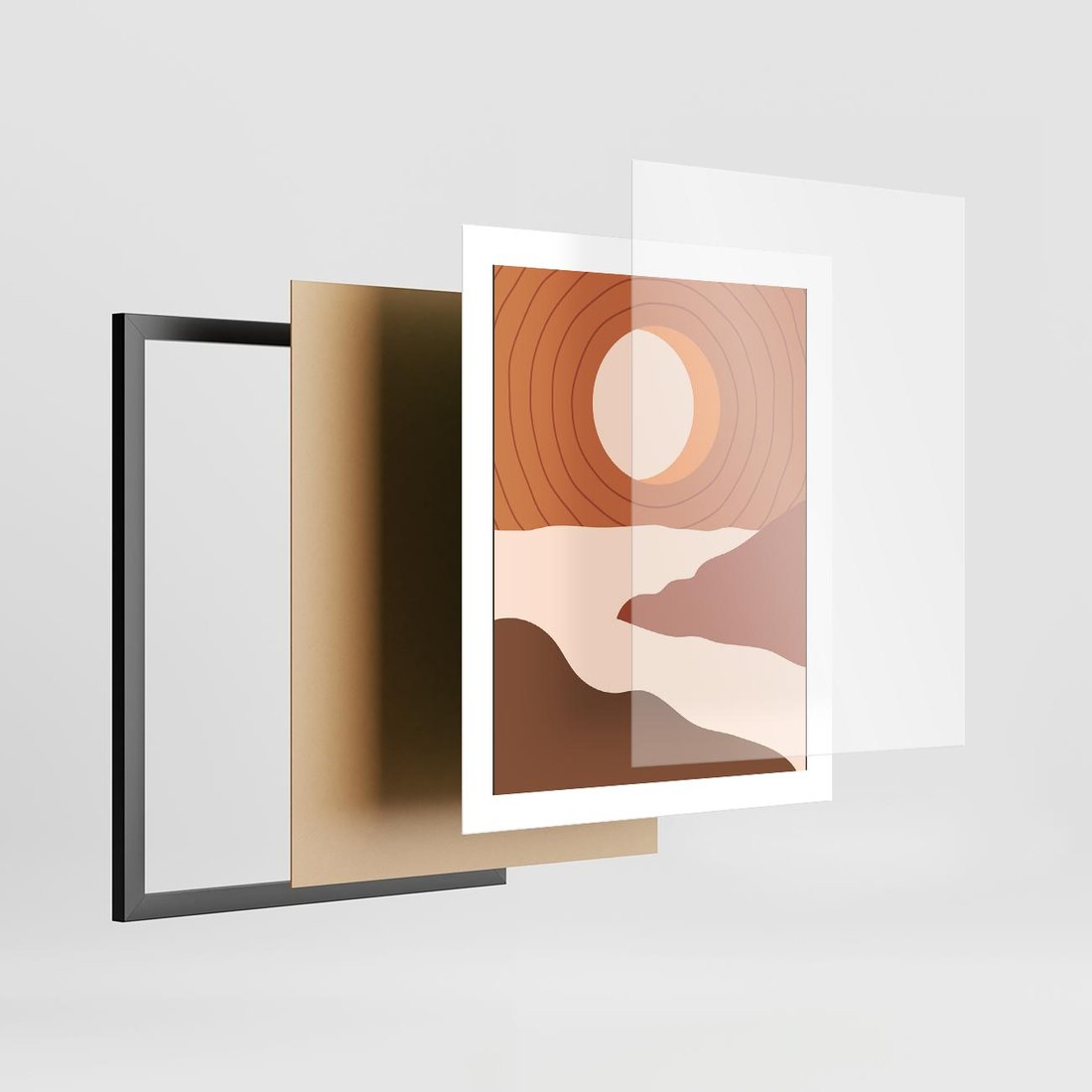 Plakat w ramie 40x50 - Sztuka Zachodu Słońca: Nowoczesna Sceneria - plakat, nowoczesna grafika - rama czarna