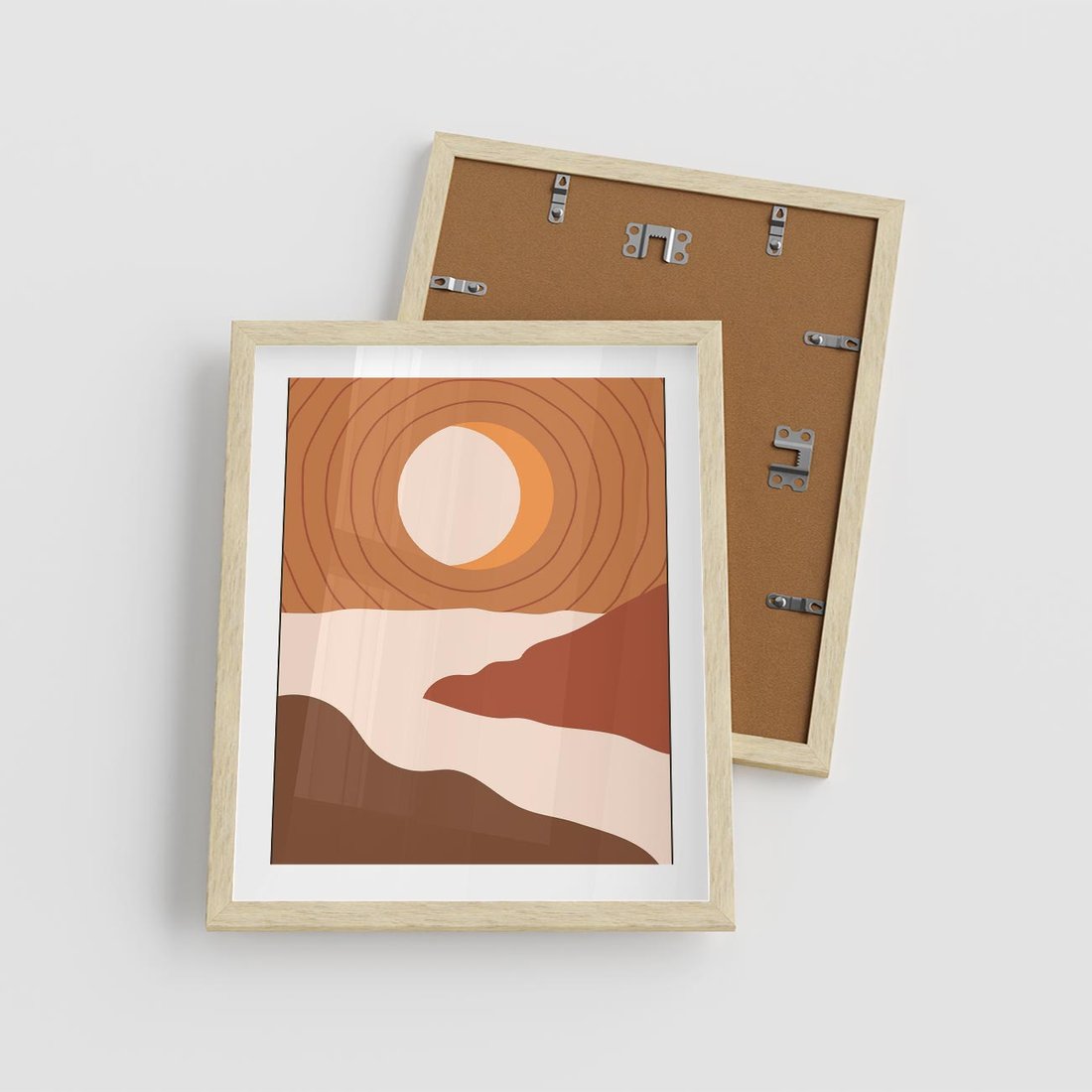 Plakat w ramie 40x50 - Sztuka Zachodu Słońca: Nowoczesna Sceneria - plakat, nowoczesna grafika - rama drewno
