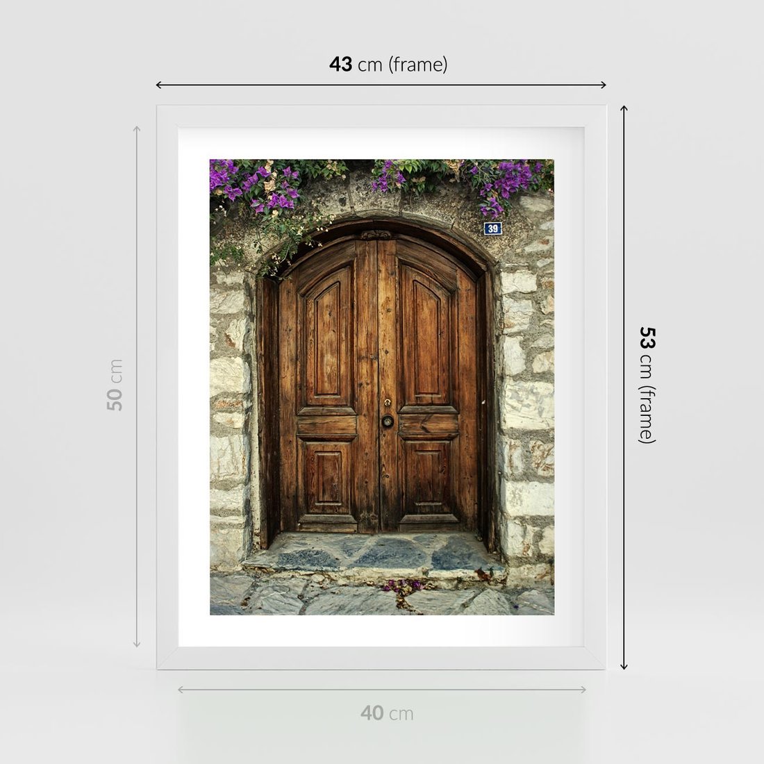 Plakat w ramie 40x50 - Tajemnicze stare drzwi - stare, drzwi - rama biała