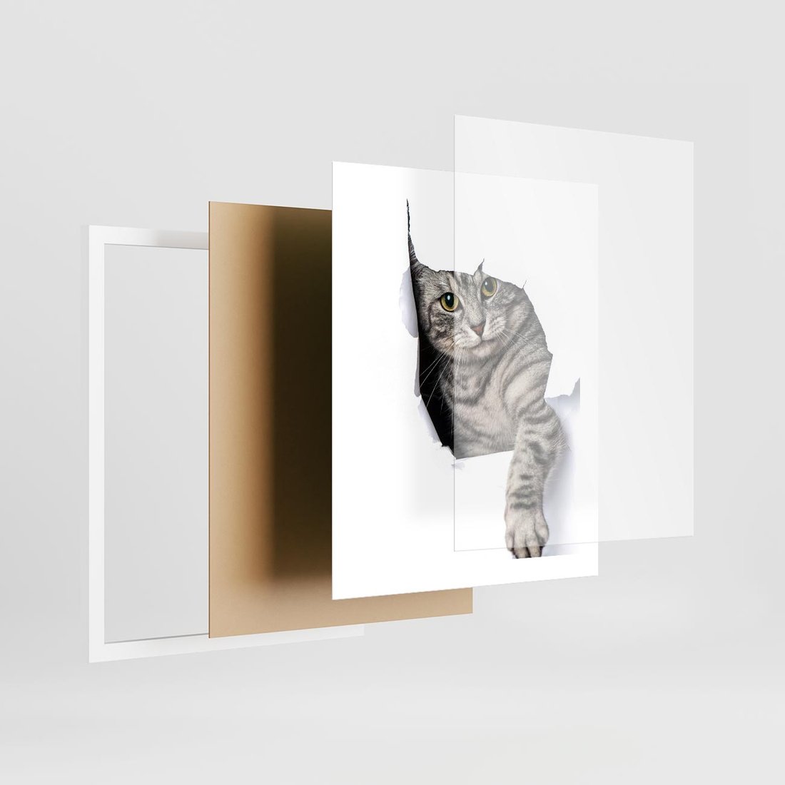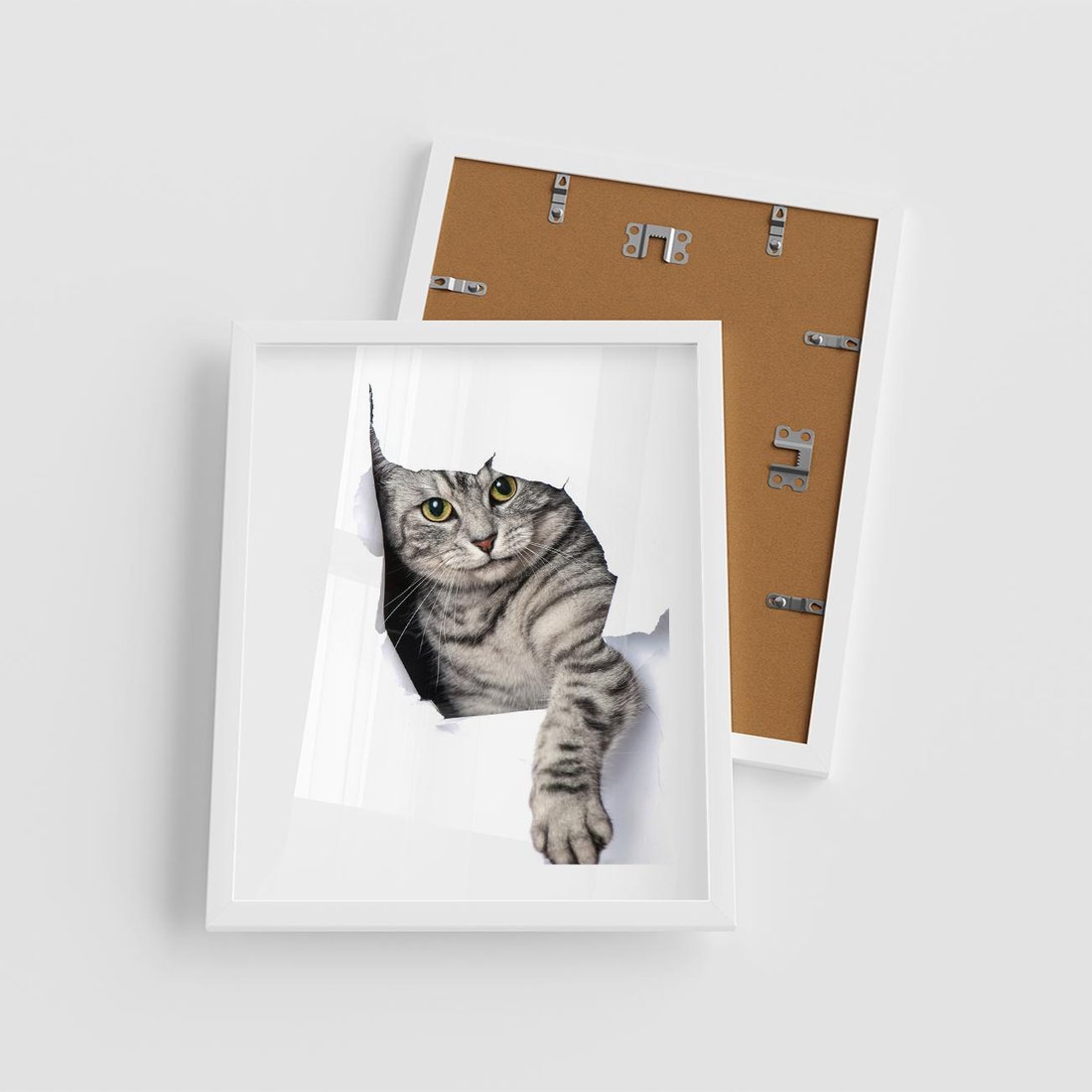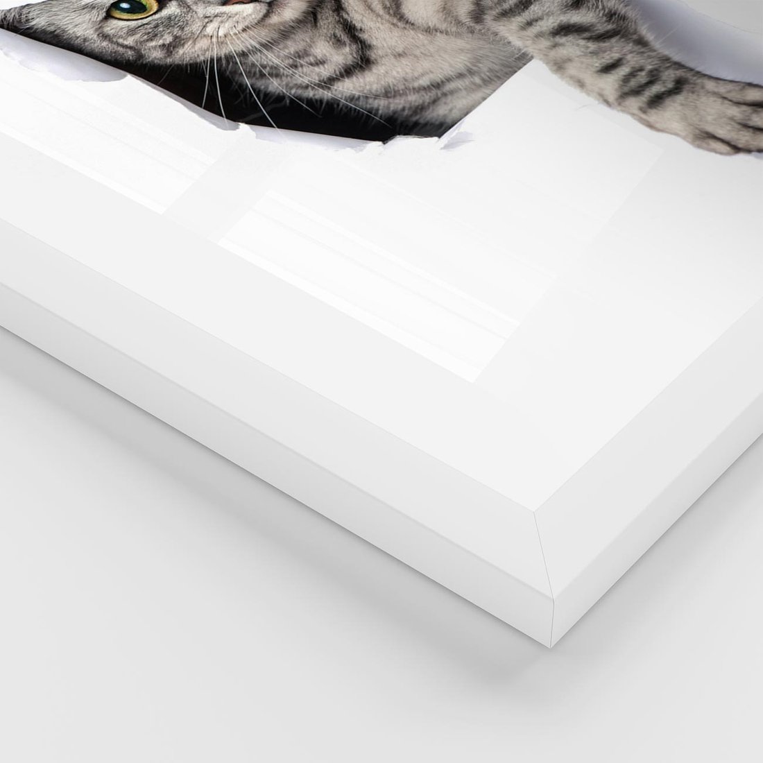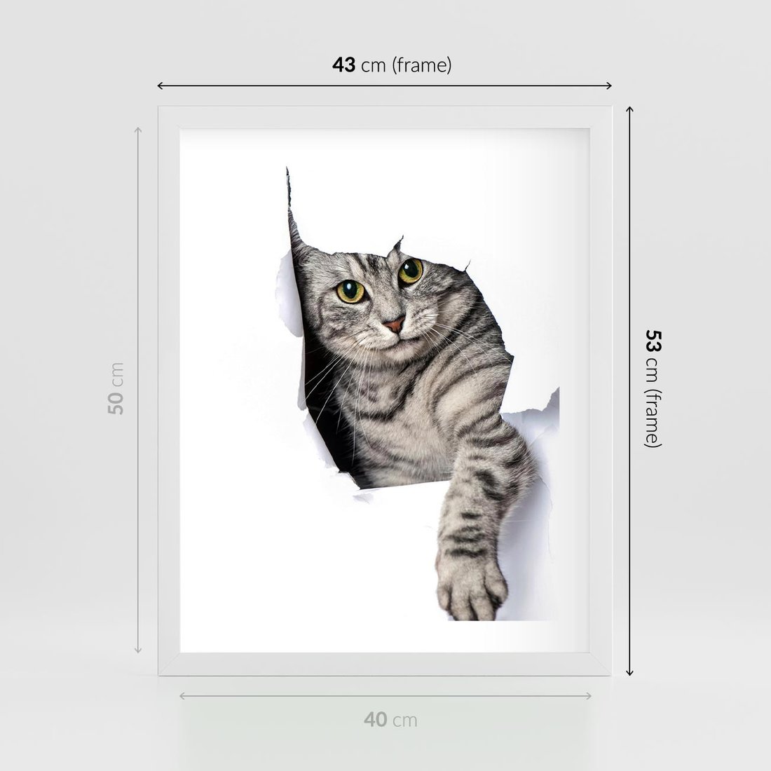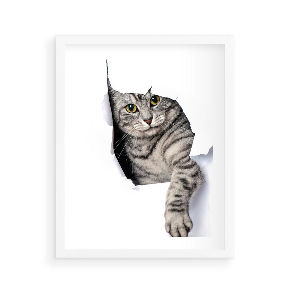 Plakat w ramie 40x50 - Tajemniczy kot i jego świat - kot, dziura - rama biała