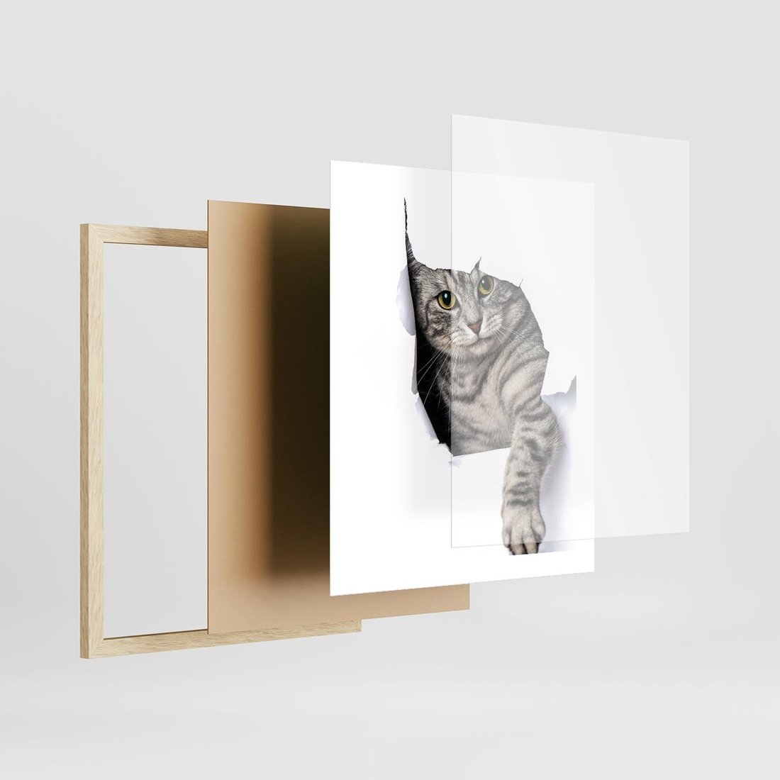 Plakat w ramie 40x50 - Tajemniczy kot i jego świat - kot, dziura - rama drewno