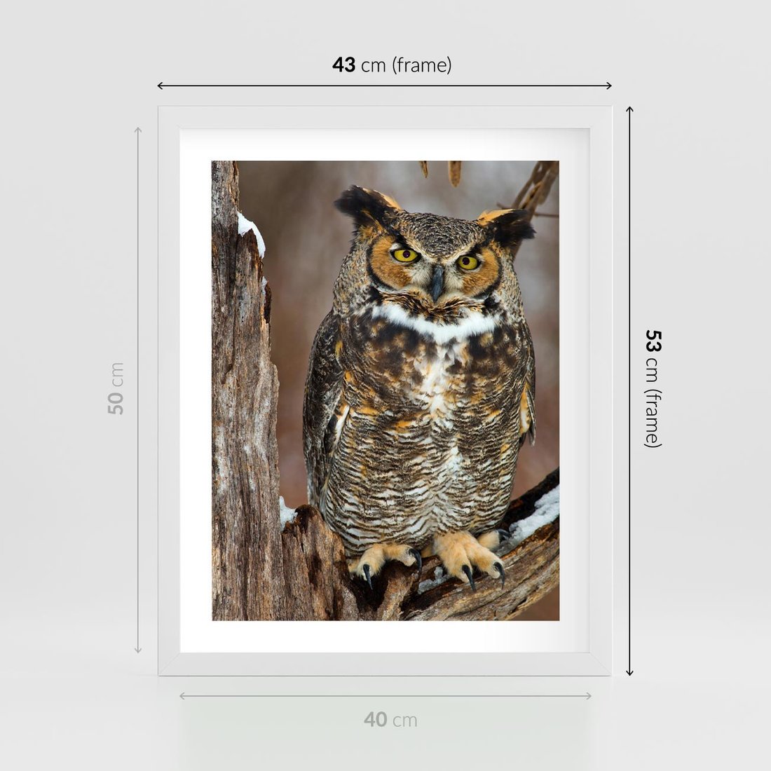 Plakat w ramie 40x50 - Tajemniczy Stróż - sowa, las - rama biała