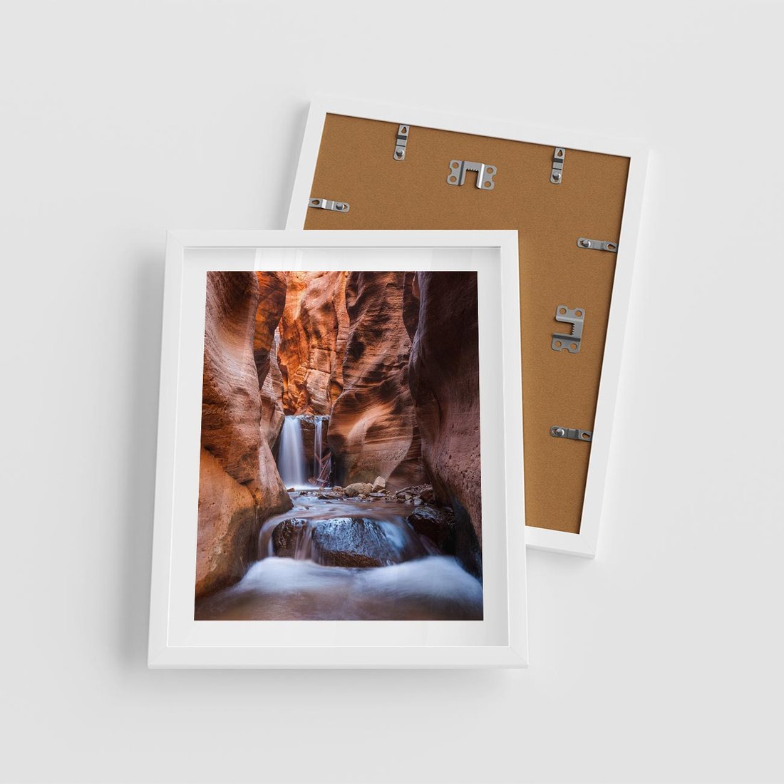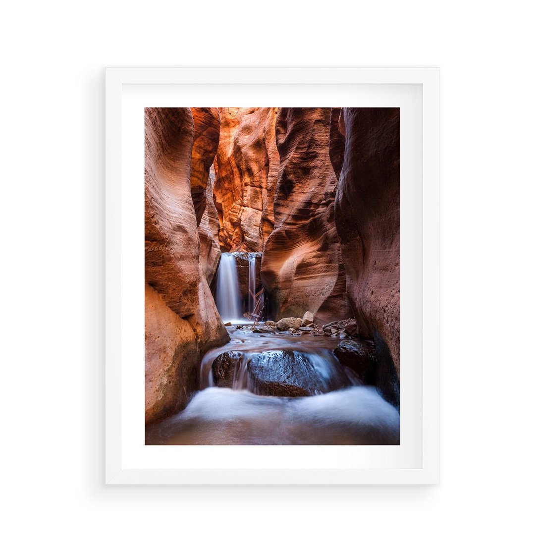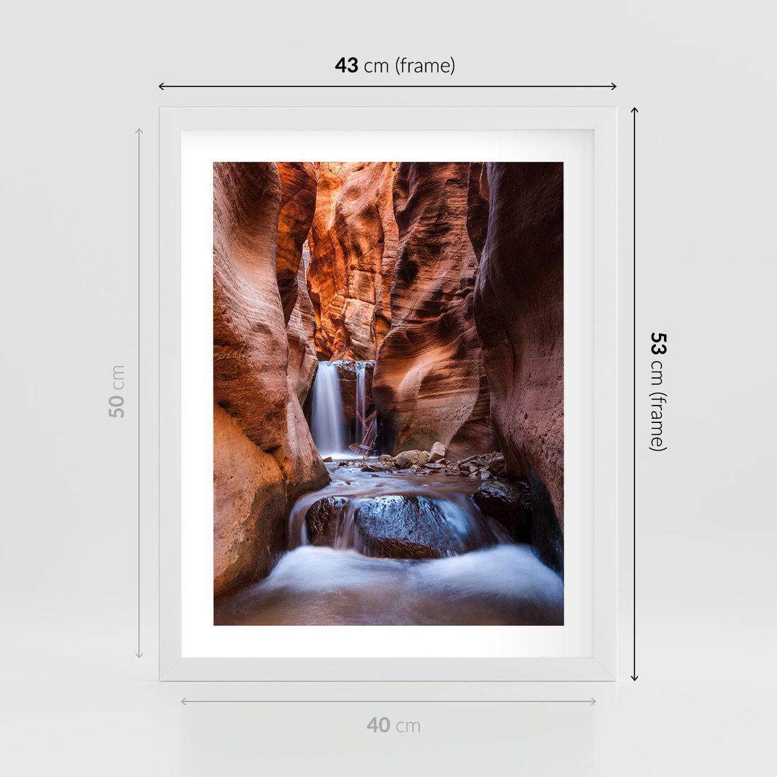 Plakat w ramie 40x50 - Tajemniczy świat jaskini i wodospadu - jaskinia, wodospad - rama biała