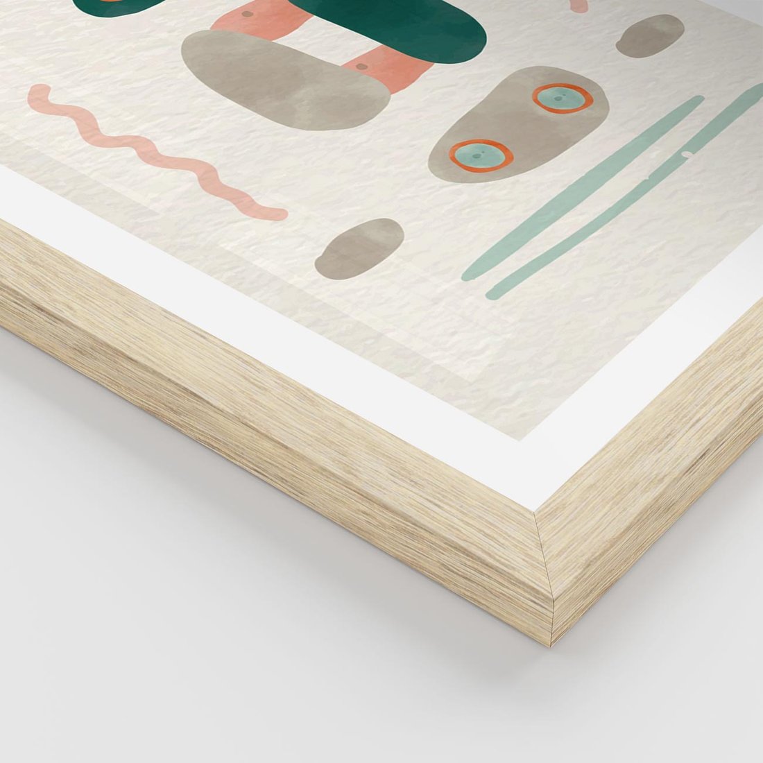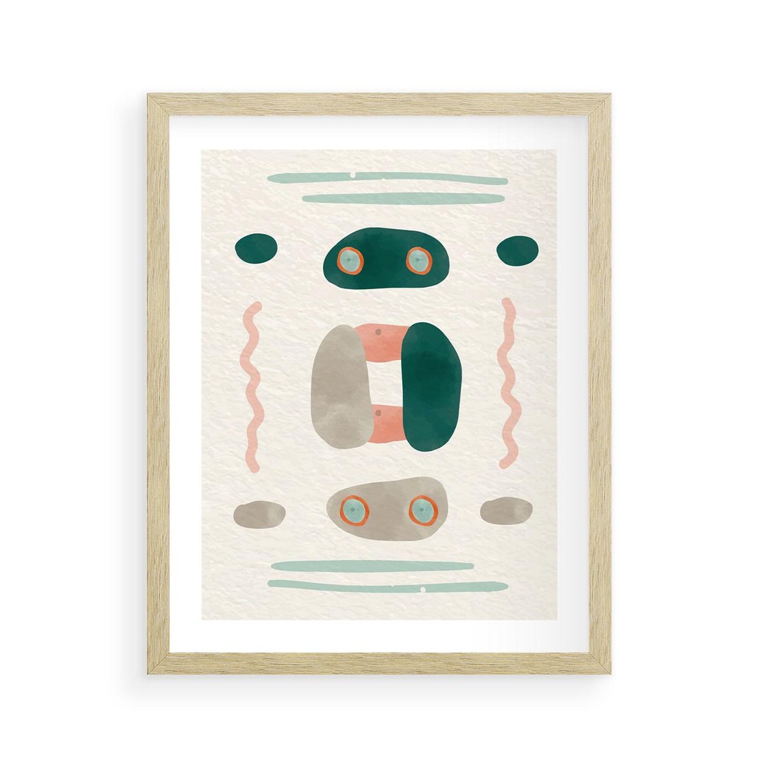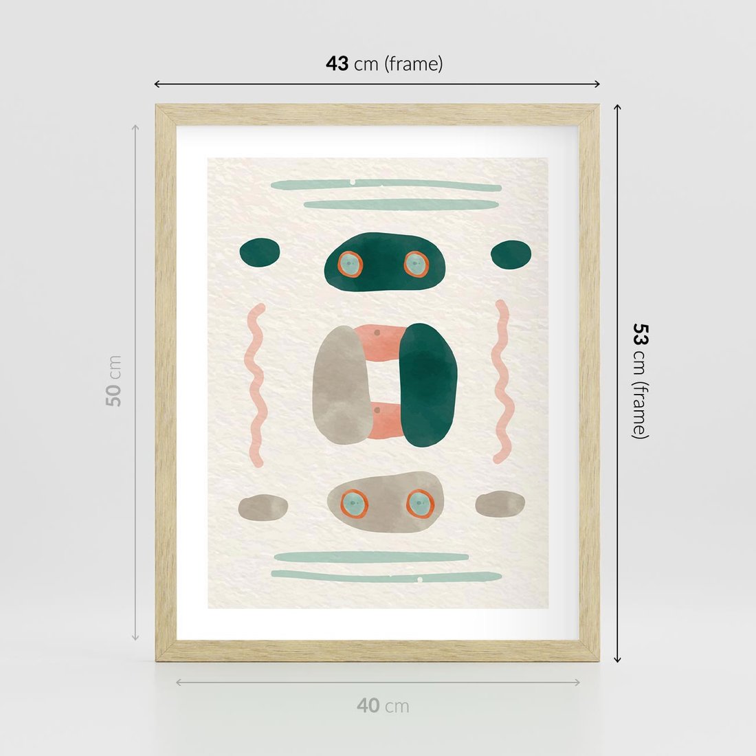 Plakat w ramie 40x50 - Tańczące Kształty Natury - przypadkowe abstrakcyjne wzory, pomarańczowy i zielony - rama drewno