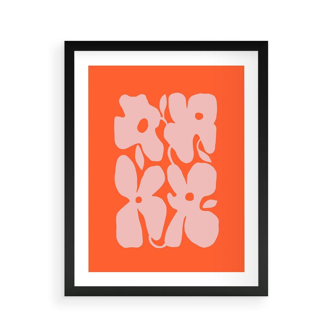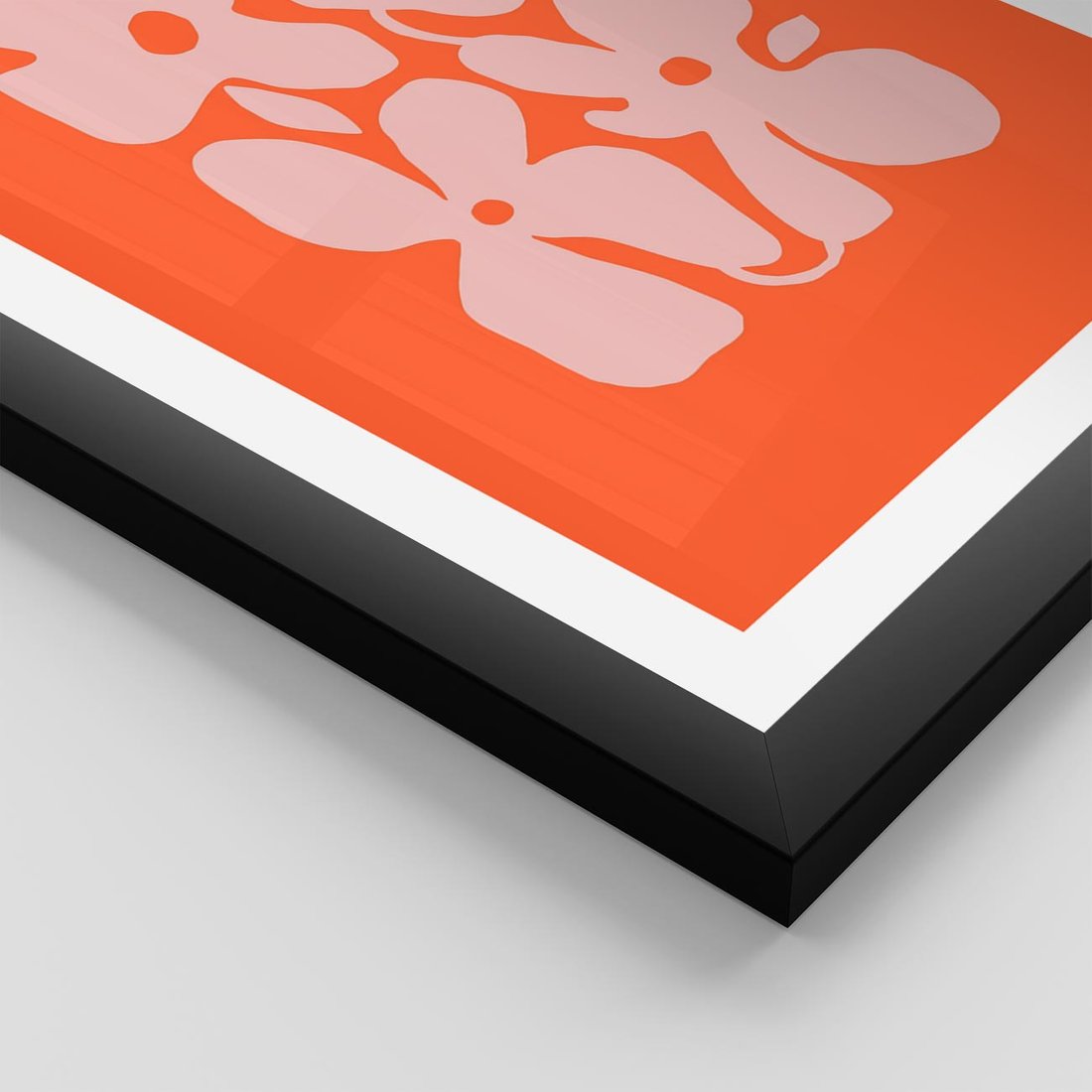 Plakat w ramie 40x50 - Taniec Abstrakcji - kwiaty, energetyczne pomarańczowe tłó - rama czarna
