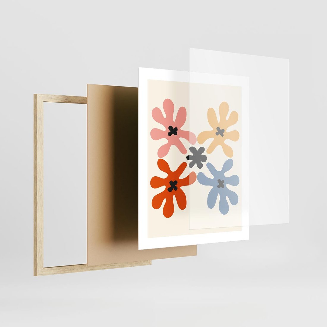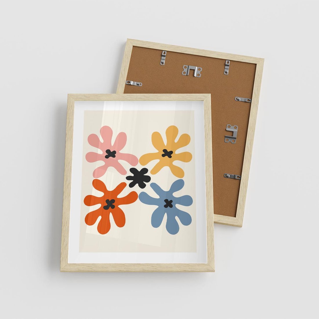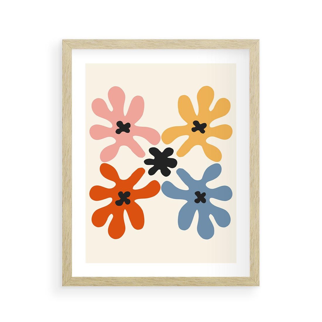 Plakat w ramie 40x50 - Taniec Akwareli - abstrakcyjne wielokolorowe kwiaty, minimalizm - rama drewno