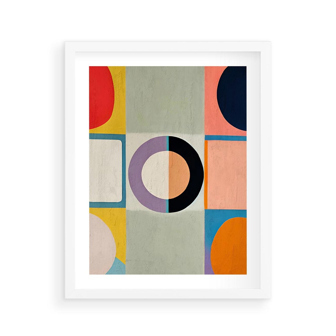 Plakat w ramie 40x50 - Taniec Kształtów Emocji - abstrakcyjne geometryczne kształty, olejny obraz - rama biała