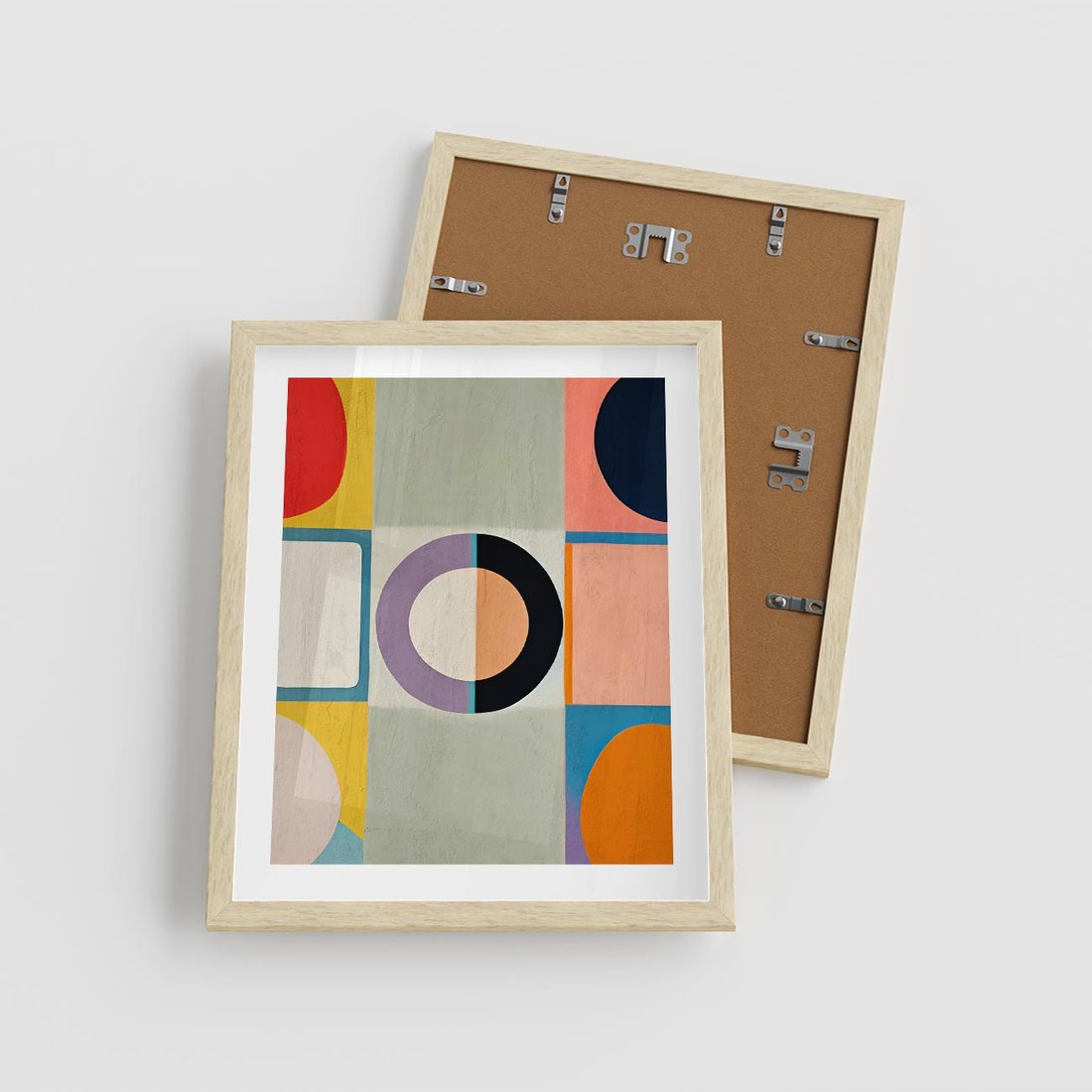 Plakat w ramie 40x50 - Taniec Kształtów Emocji - abstrakcyjne geometryczne kształty, olejny obraz - rama drewno