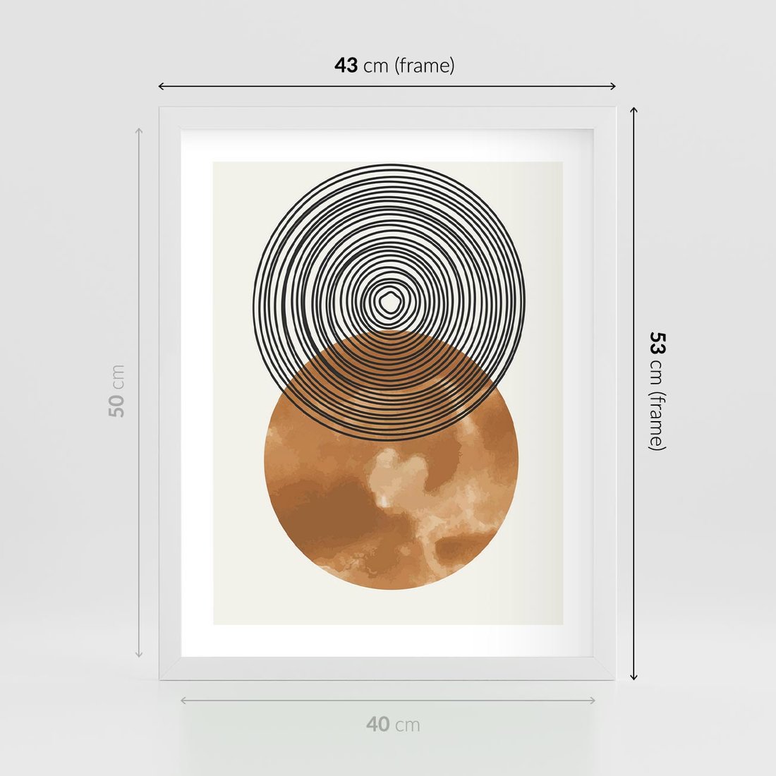 Plakat w ramie 40x50 - Taniec Okręgów - boho obraz, geometria - rama biała