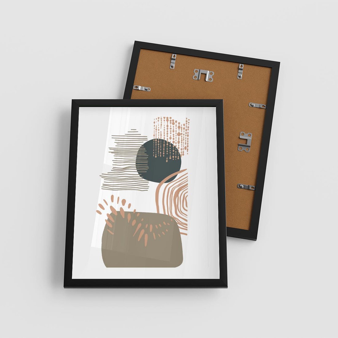 Ta abstrakcyjna kompozycja składa się z delikatnych kropek, kresek i kółek w spokojnych odcieniach brązu i beżu. Jej minimalistyczny charakter przynosi uczucie harmonii i spokoju, doskonale pasując do każdego wnętrza.