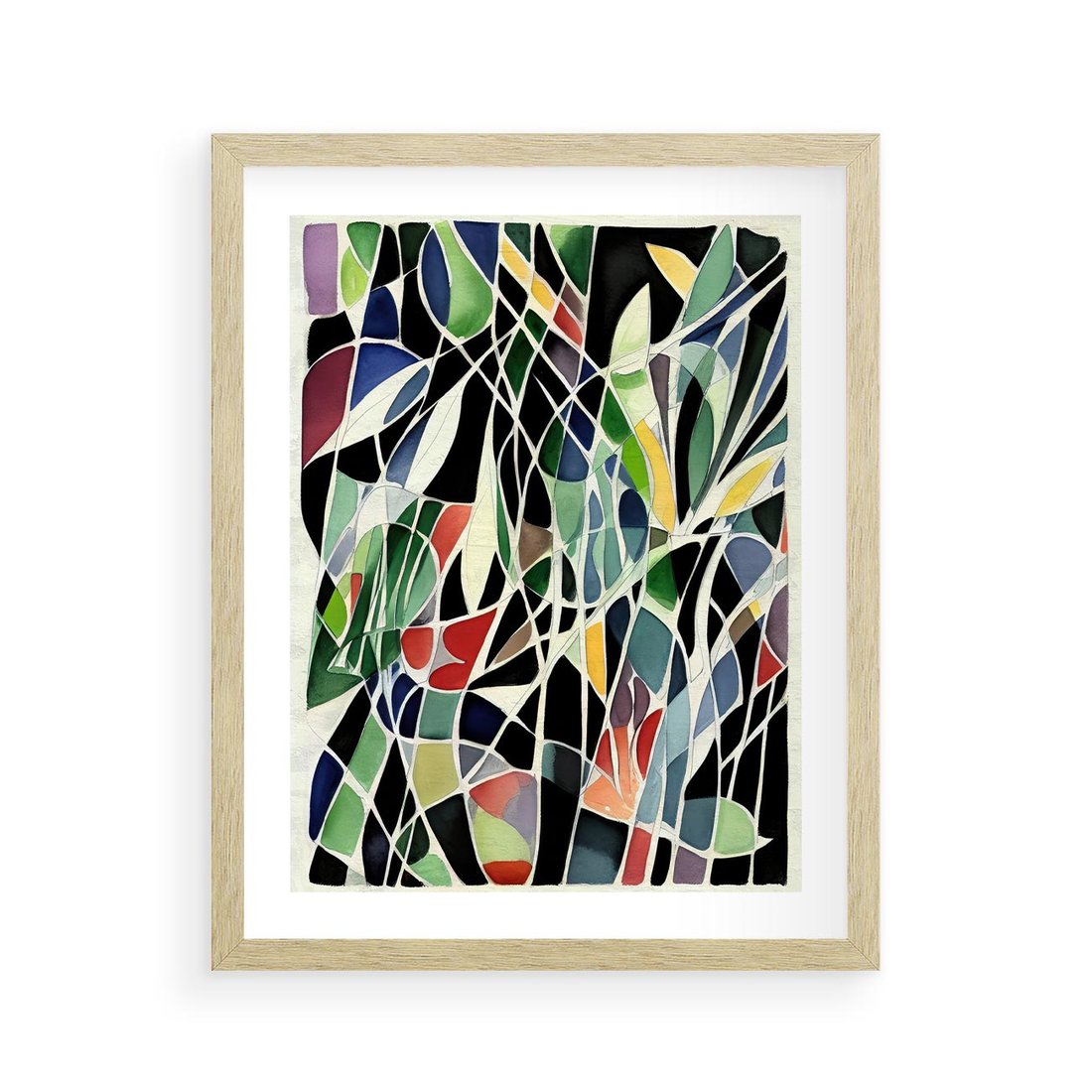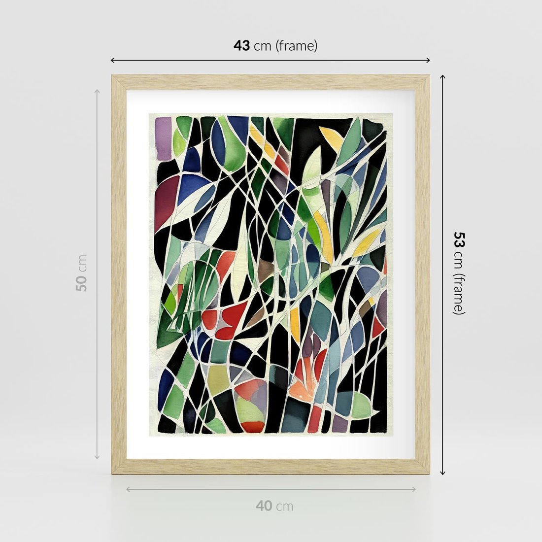 Plakat w ramie 40x50 - Taniec Plam i Kształtów - abstrakcyjny akwarelowy obraz, plamy - rama drewno