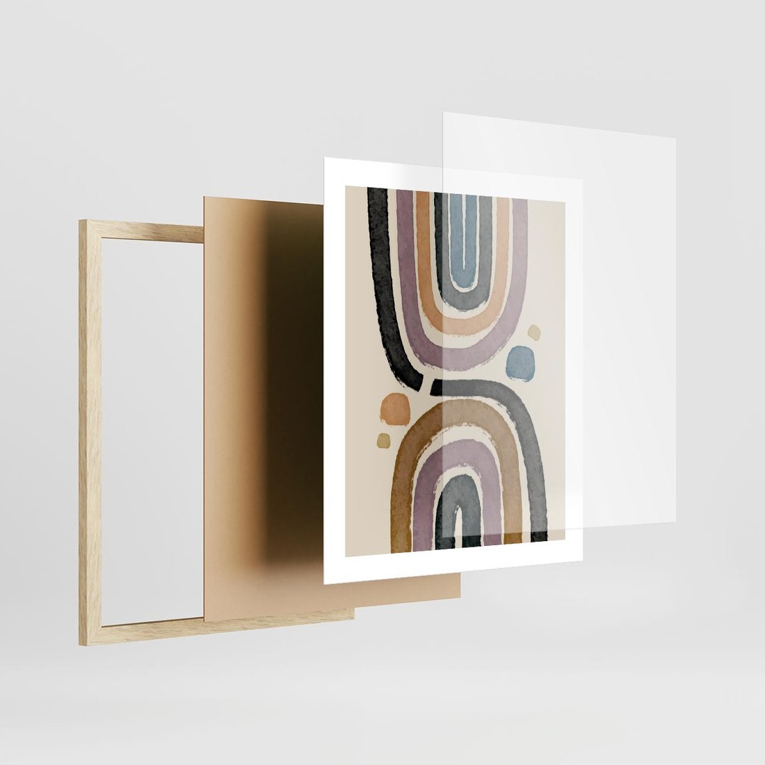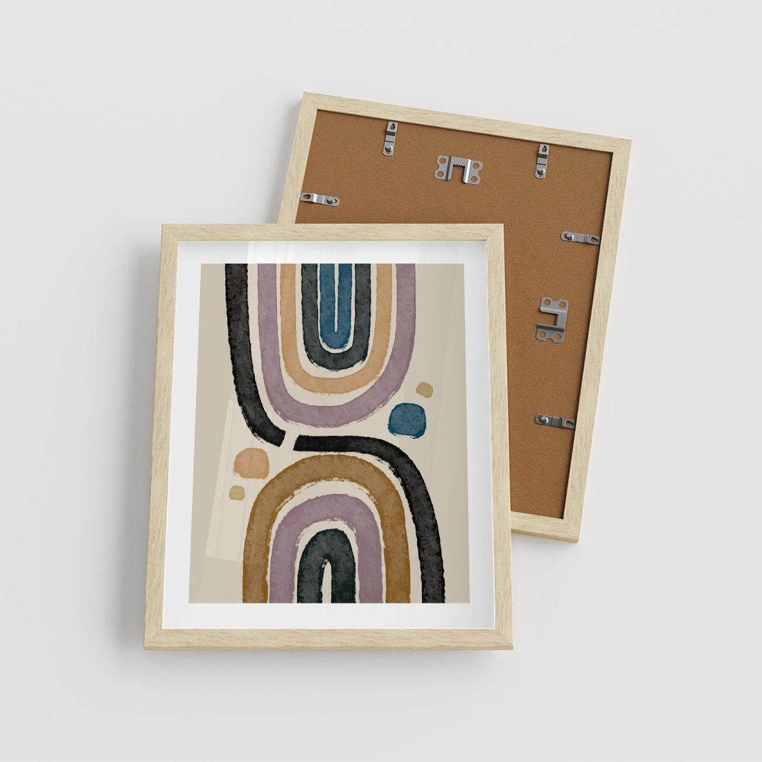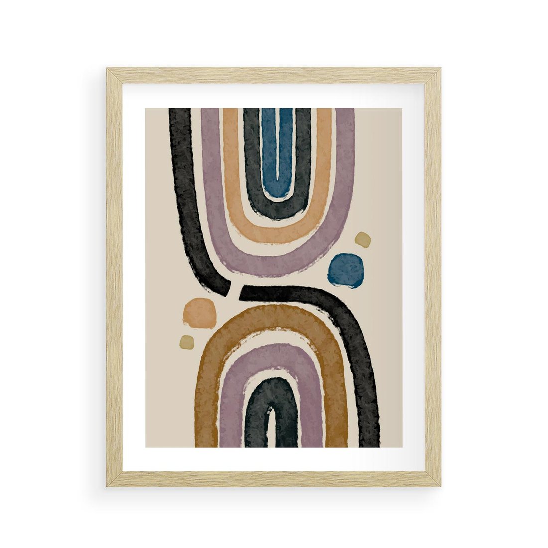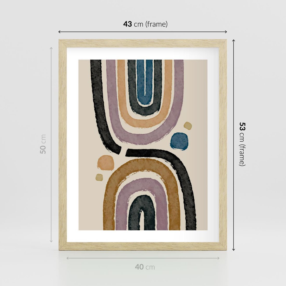 Plakat w ramie 40x50 - Taniec Przenikających Kształtów - abstrakcyjne tęcze, kompozycja - rama drewno