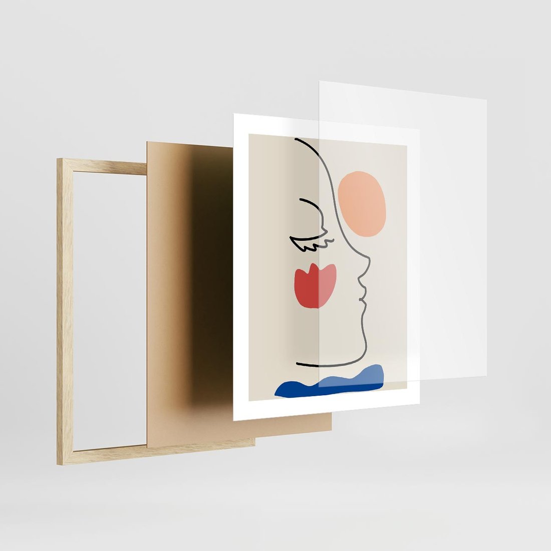 Plakat w ramie 40x50 - Taniec Przenikających Plam - abstrakcyjny obraz, przypomina twarz - rama drewno