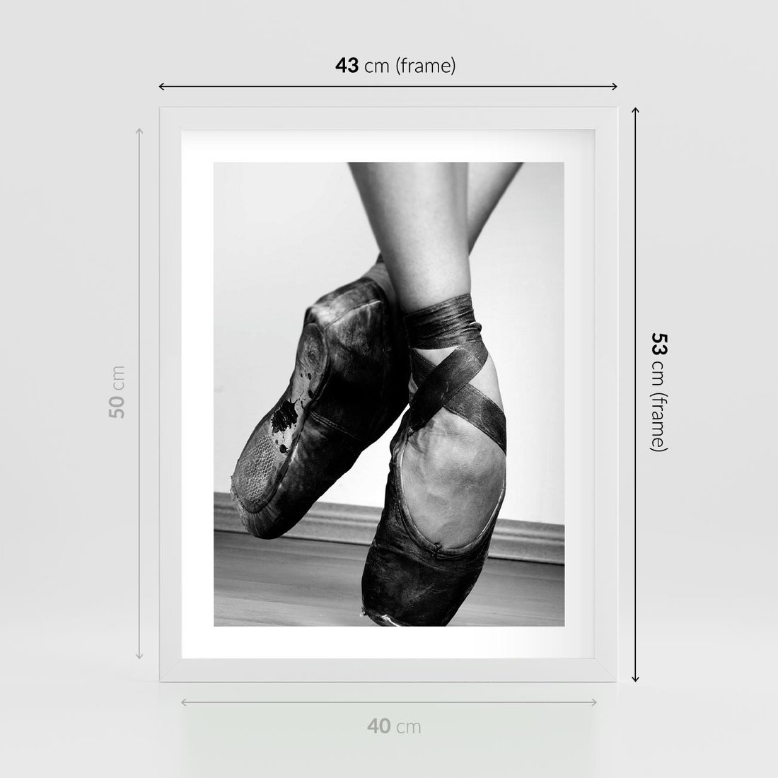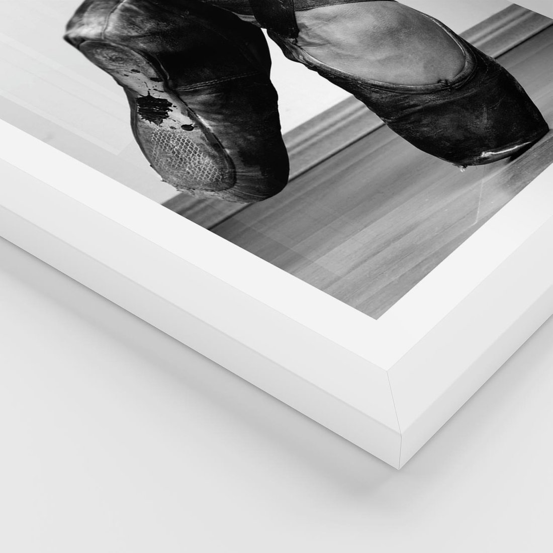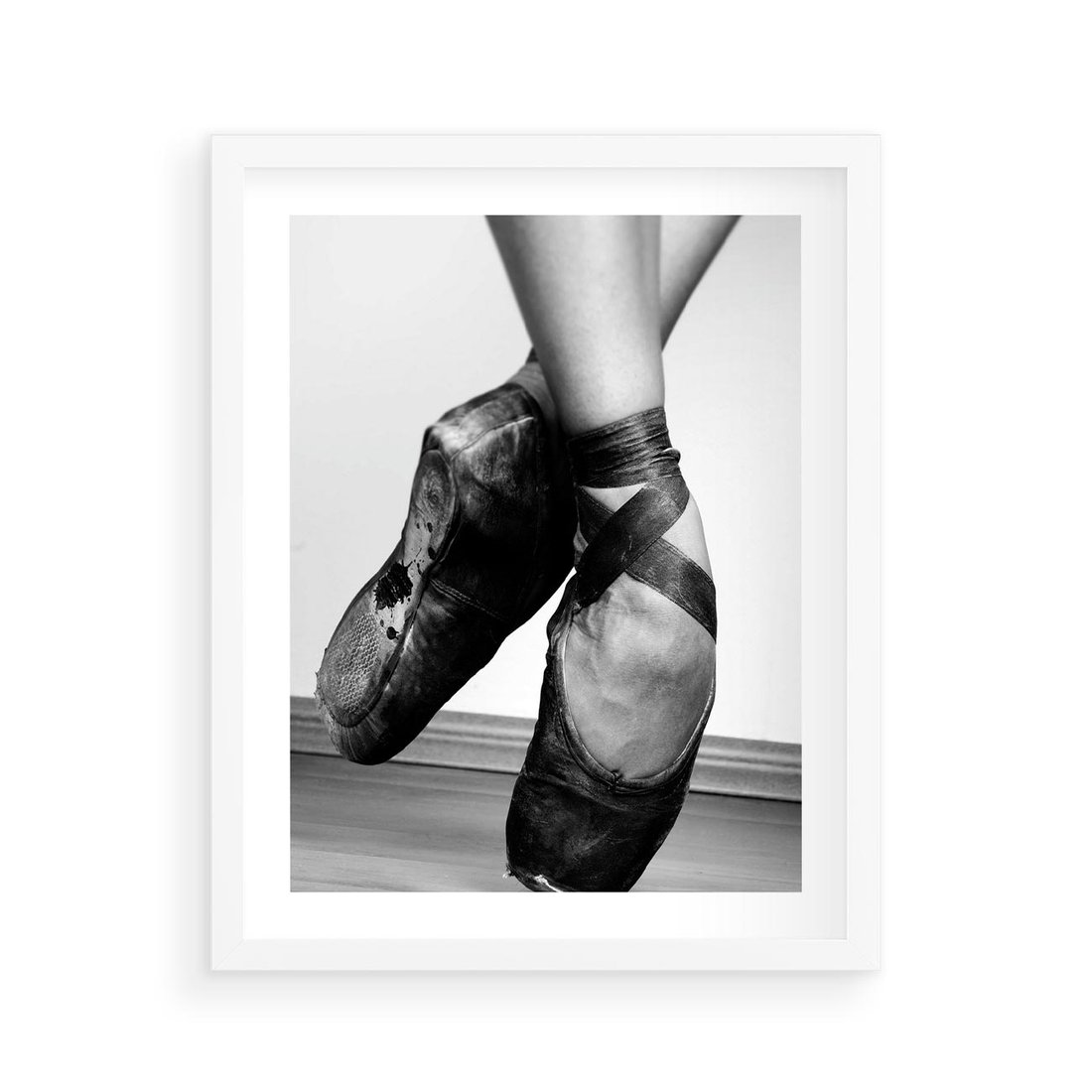To artystyczne zdjęcie w odcieniach szarości ukazuje subtelne i delikatne piękno stóp baletnicy ubranych w pointy. Zbliżenie na te wyjątkowe momenty tańca w połączeniu z monochromatyczną paletą kolorów tworzy wyjątkową atmosferę. To doskonały wybór dla miłośników sztuki i baletu, którzy chcą wnieść elegancję i wyrafinowanie do swojej przestrzeni.