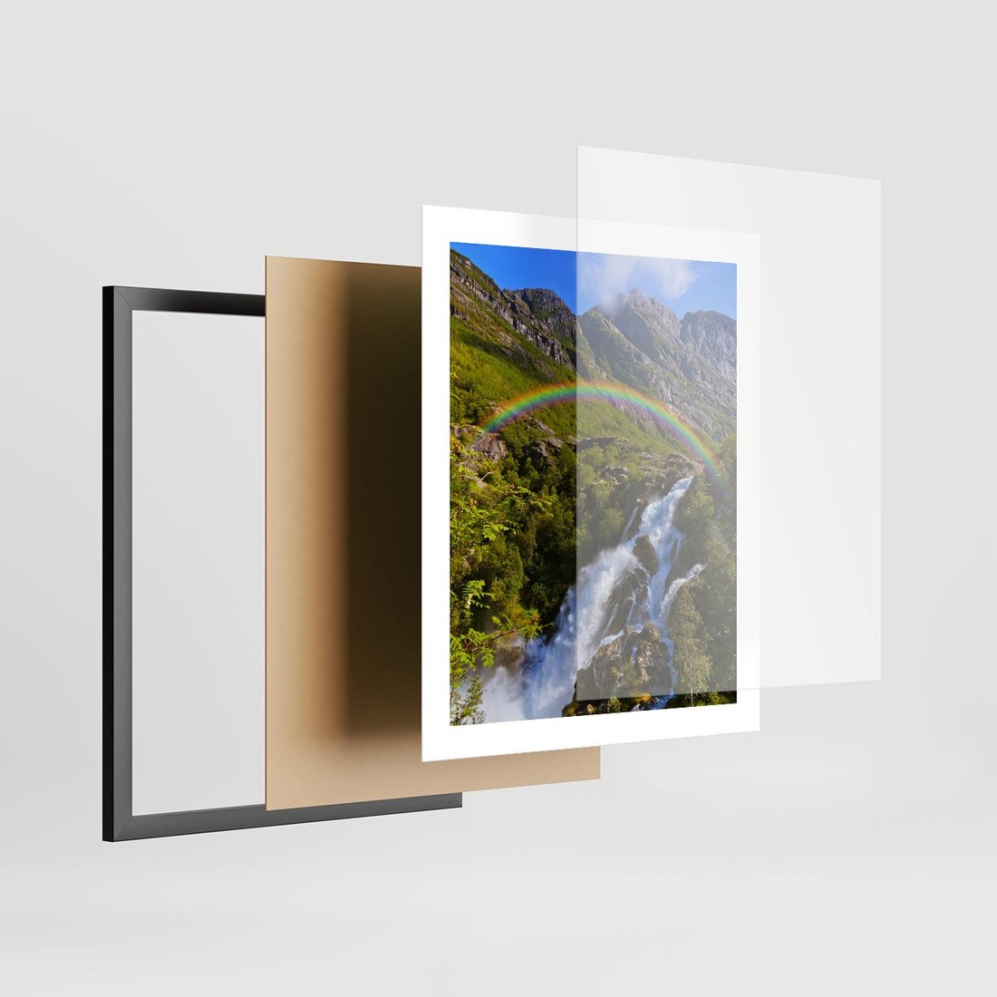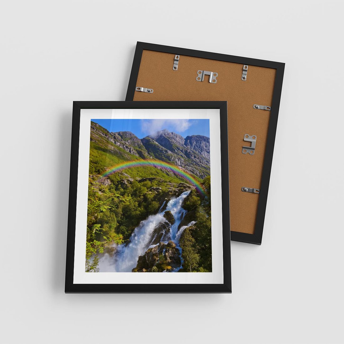 Plakat w ramie 40x50 - Tęczowe góry - harmonia kolorów - tęcza, góry - rama czarna