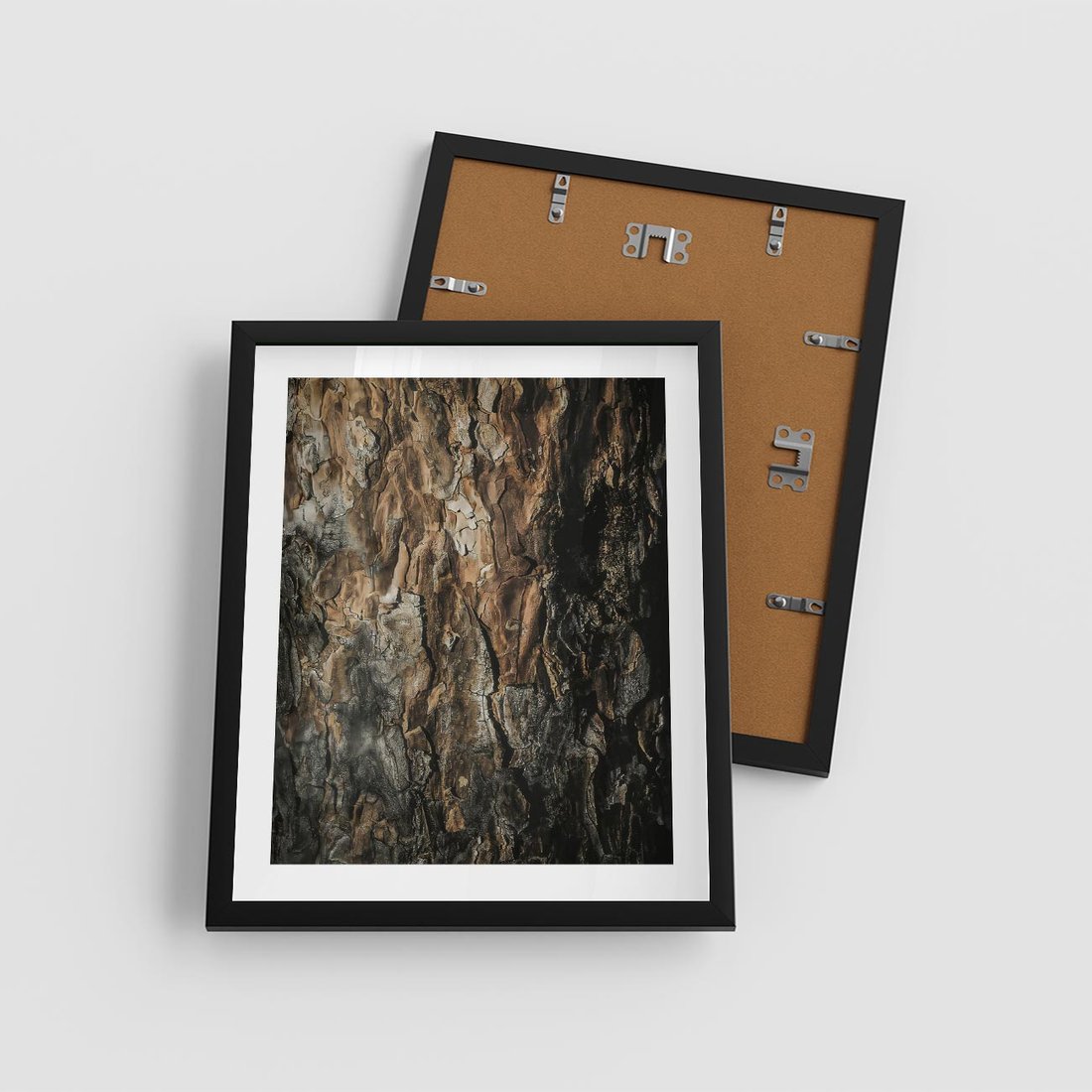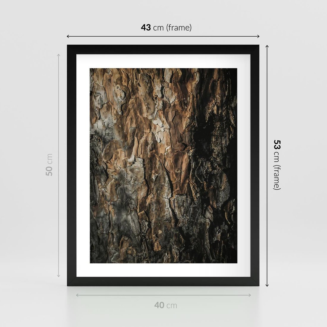 Plakat w ramie 40x50 - Tekstura Drewna: Zbliżenie - zbliżenie na pień drzewa, tekstura - rama czarna