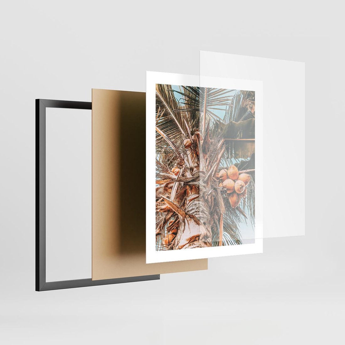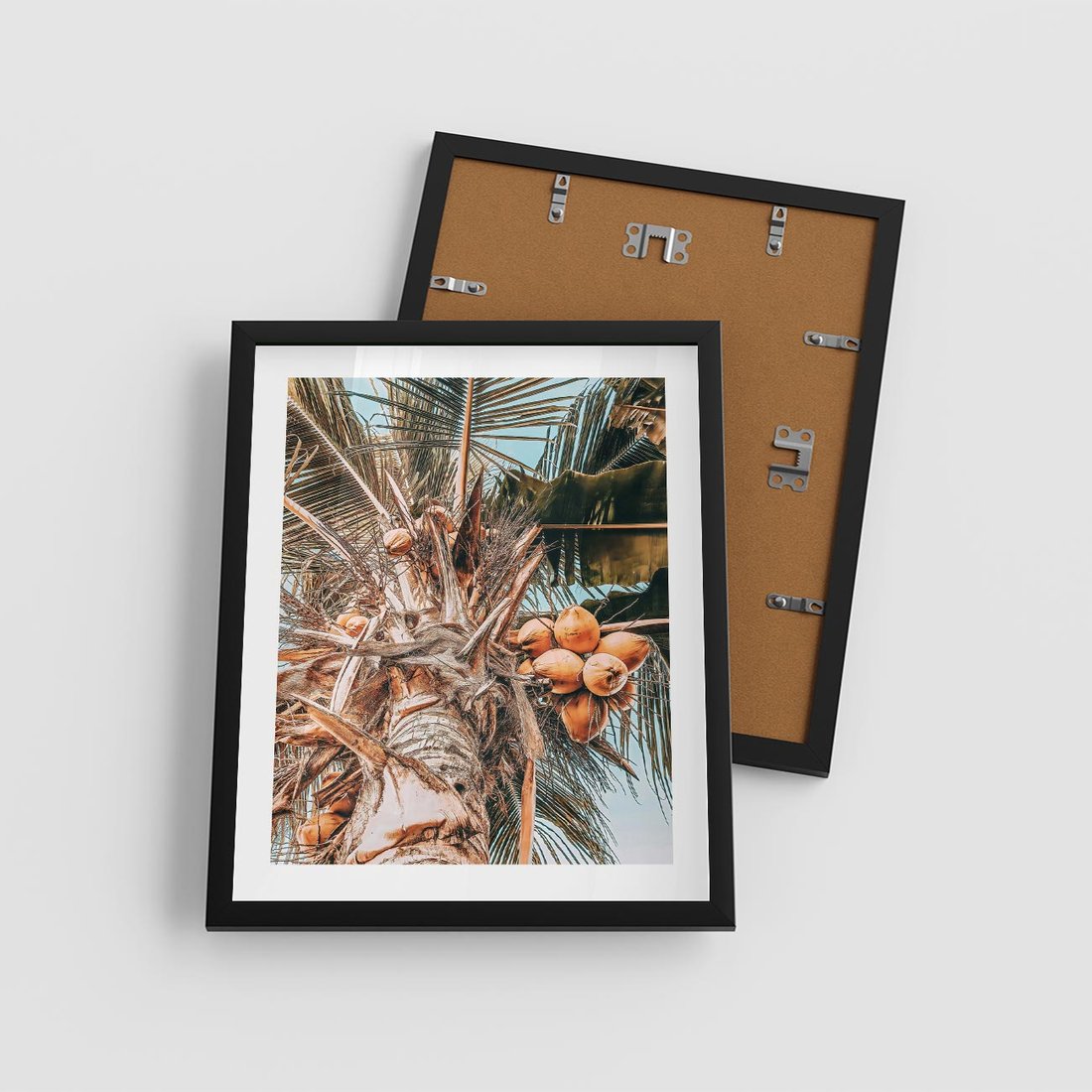 Plakat w ramie 40x50 - Tropikalna Palma: Fotografia z Kokosami - palma kokosowa, kokosy - rama czarna