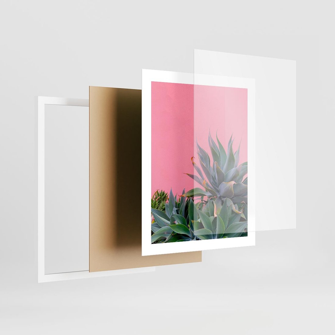 - Plakat w ramie 40x50 - Tropikalne Liście na Różowej Ścianie
