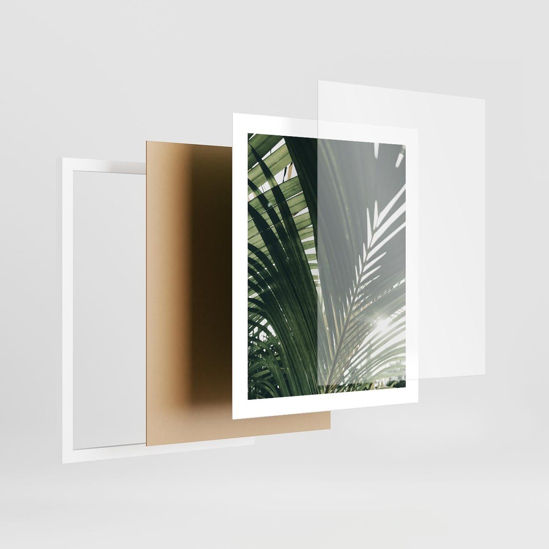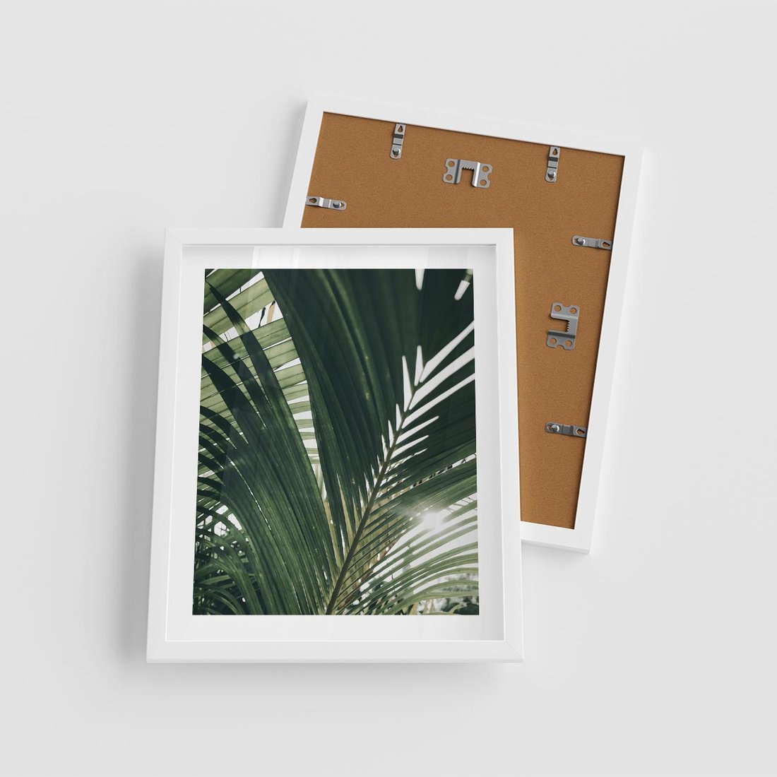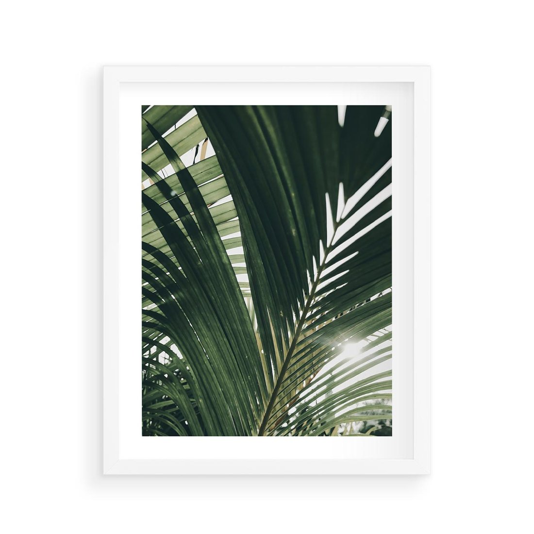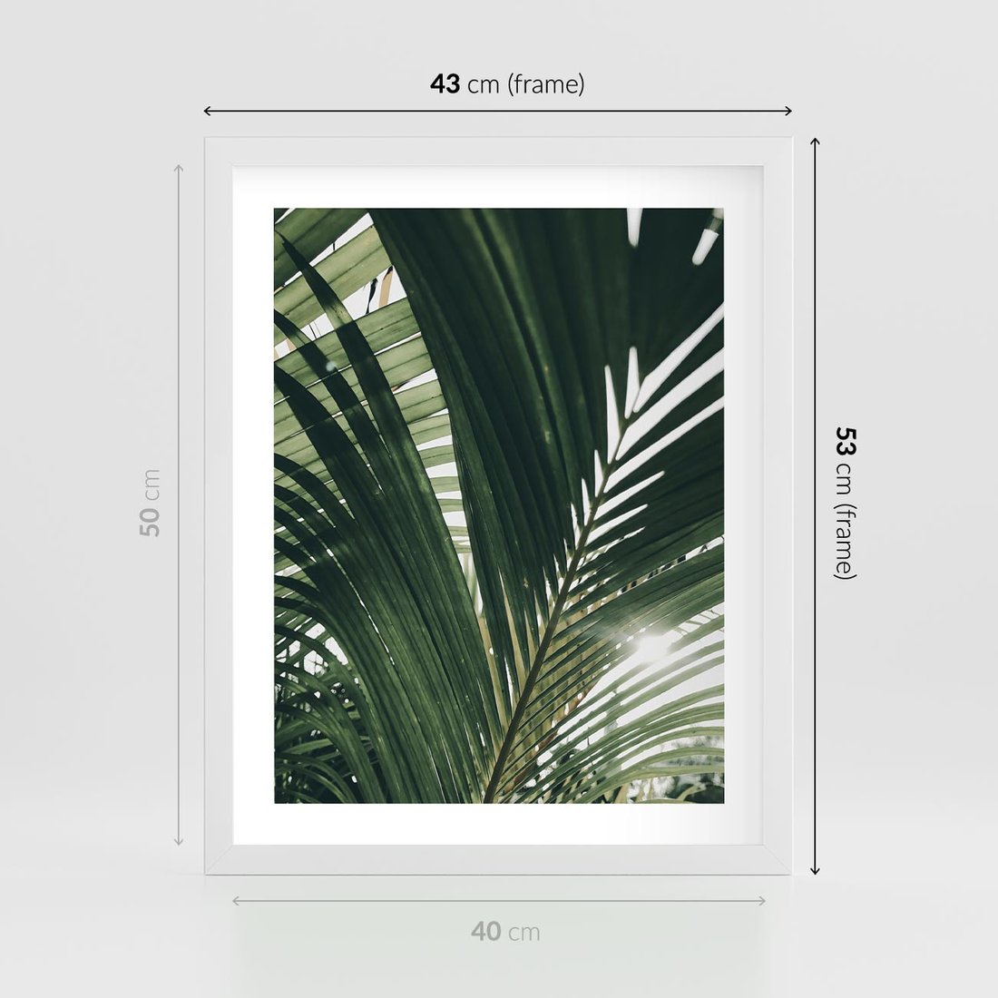 Plakat w ramie 40x50 - Tropikalne Uroki: Palmy i Zielone Liście - palmy, zielone liście - rama biała