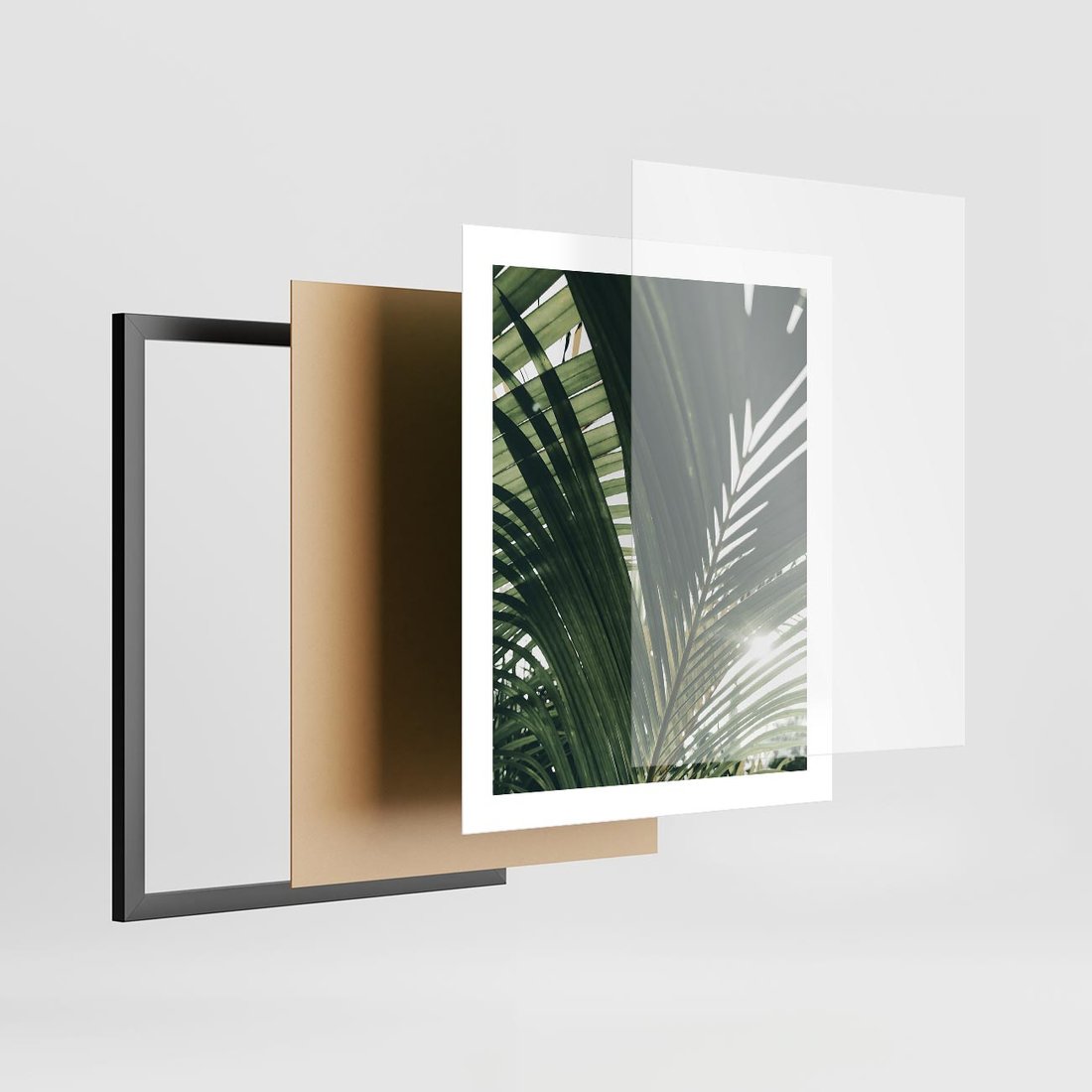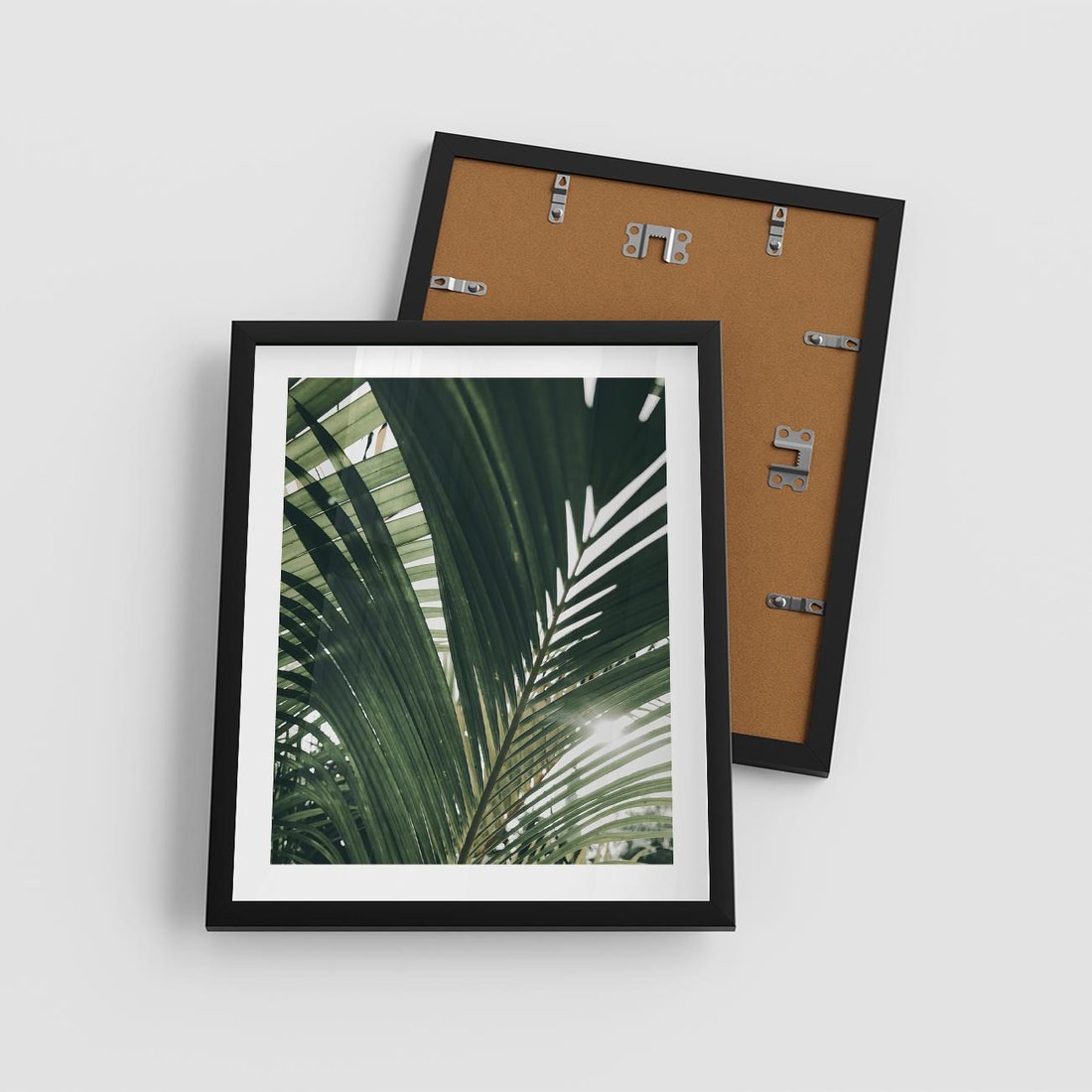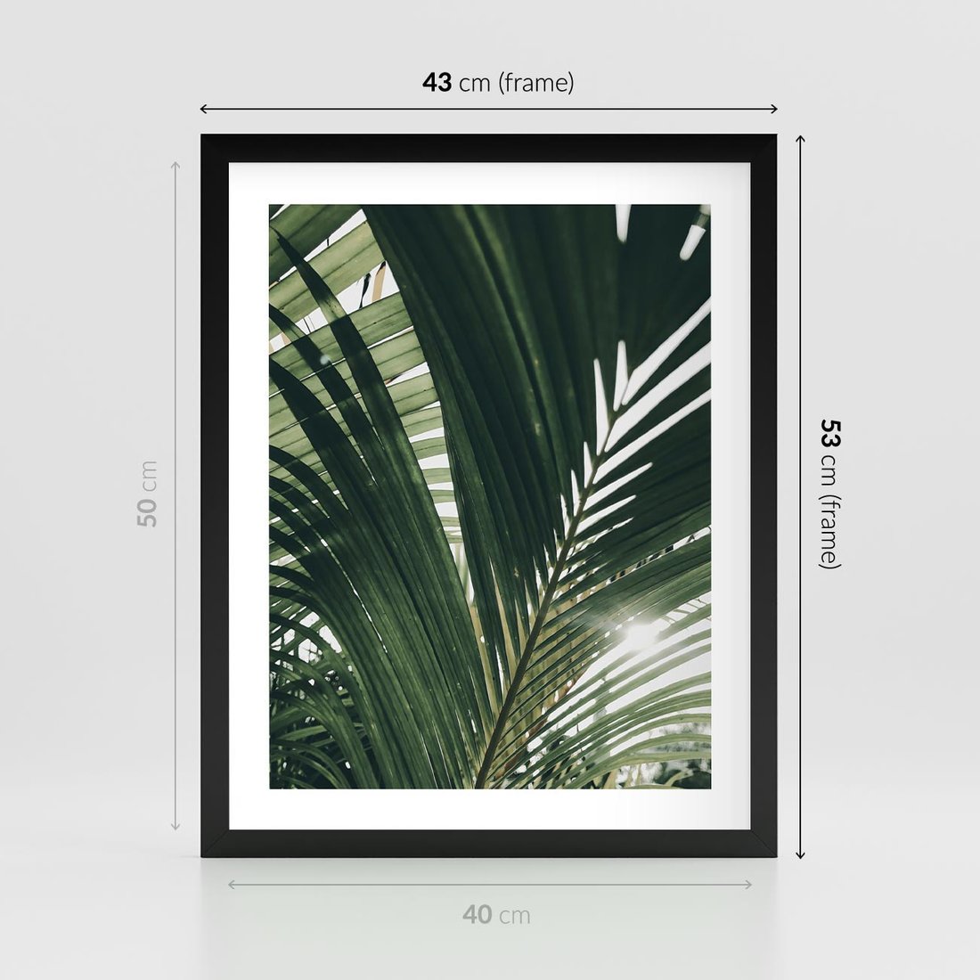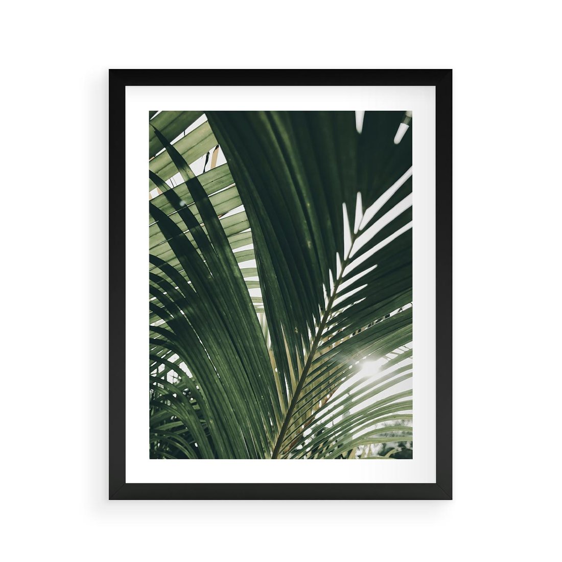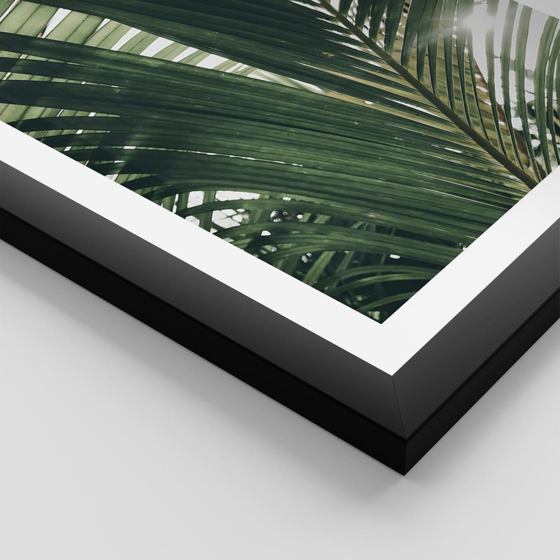 Plakat w ramie 40x50 - Tropikalne Uroki: Palmy i Zielone Liście - palmy, zielone liście - rama czarna
