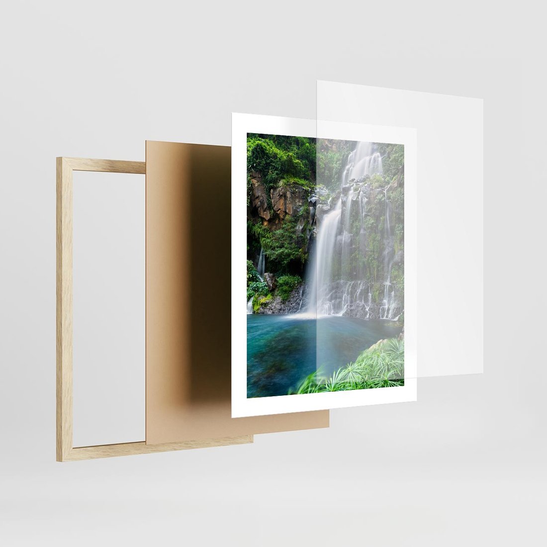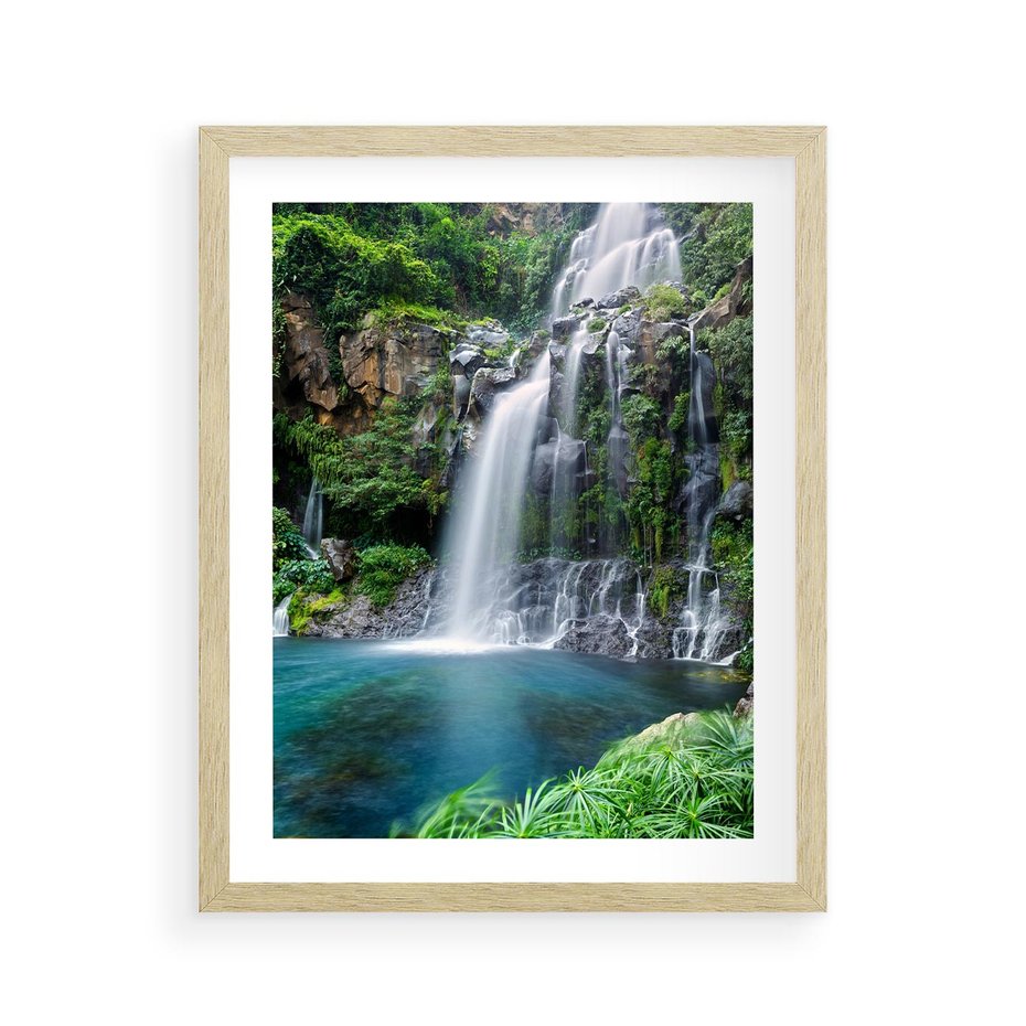 Plakat w ramie 40x50 - Tropikalny Wodospad - wodospad, tropikalny - rama drewno