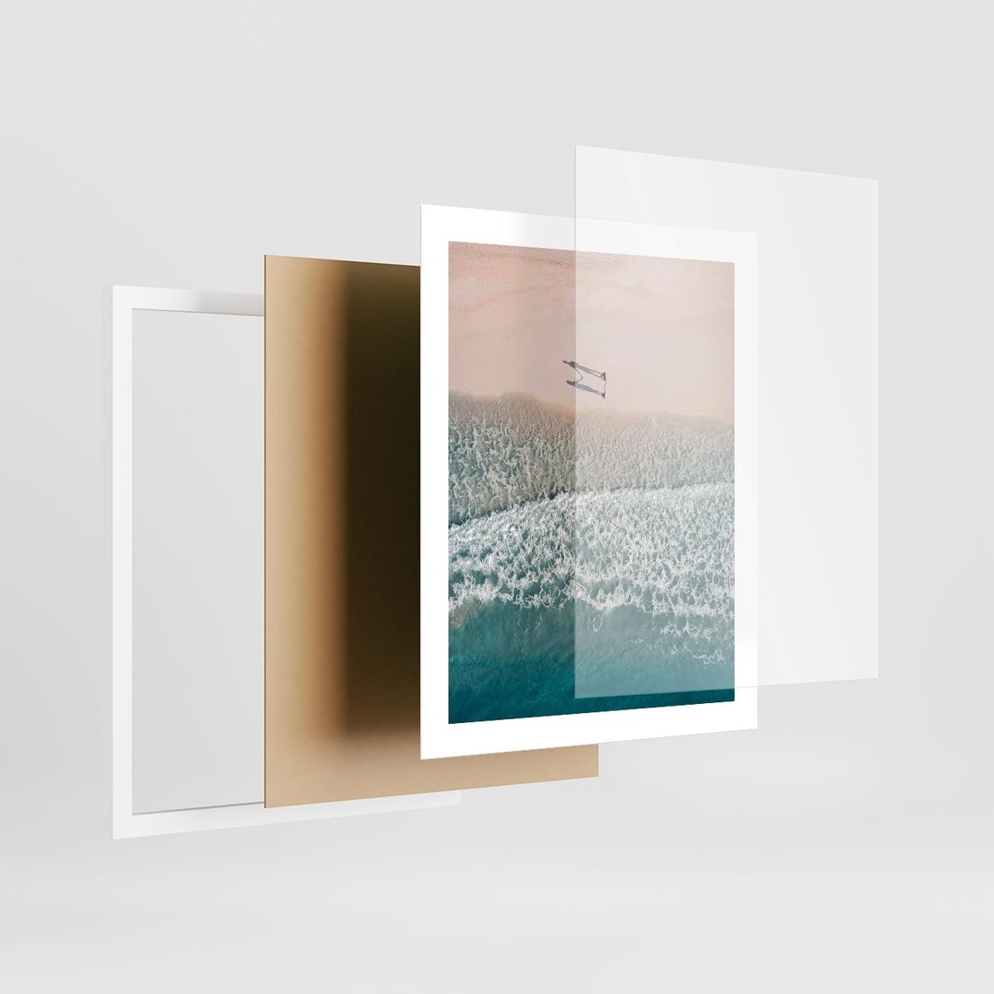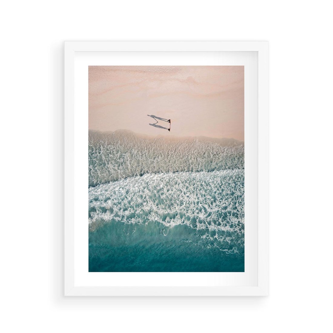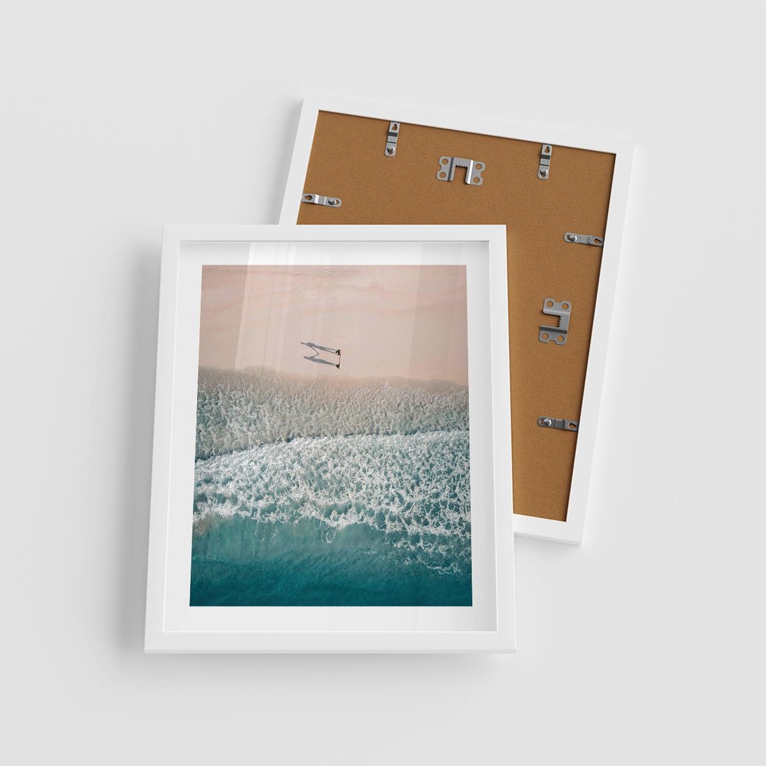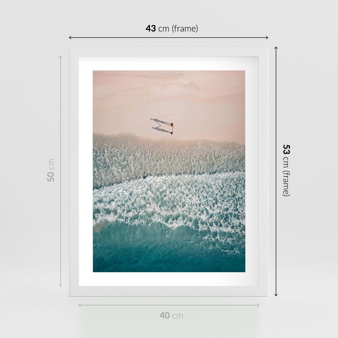 Plakat w ramie 40x50 - Turkusowe Uroki - niebieskie turkusowe morze, plaża - rama biała