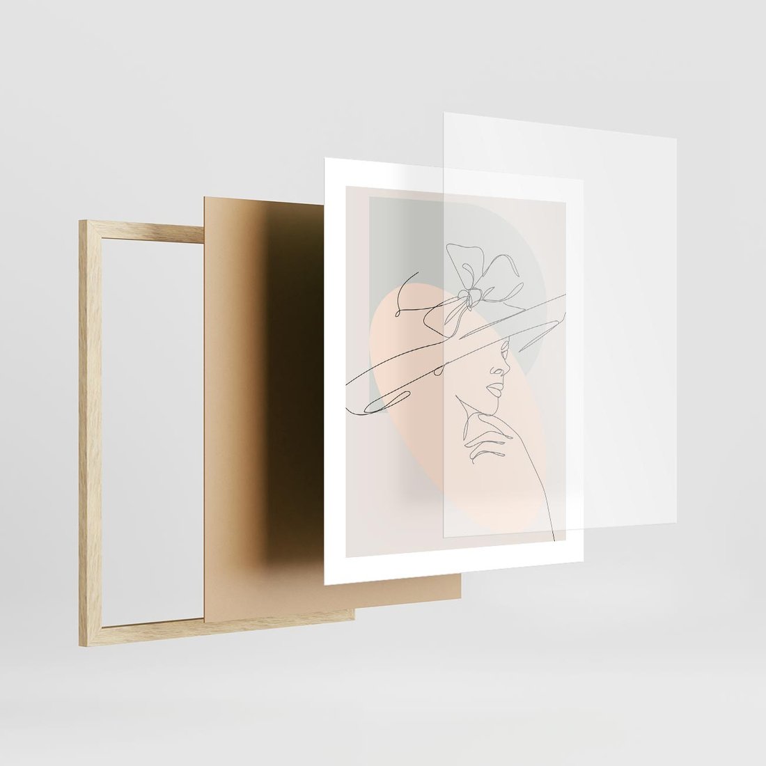 Plakat w ramie 40x50 - Twarz Kobiety w Pastelach - minimalistyczna grafika, pastelowe tłó - rama drewno