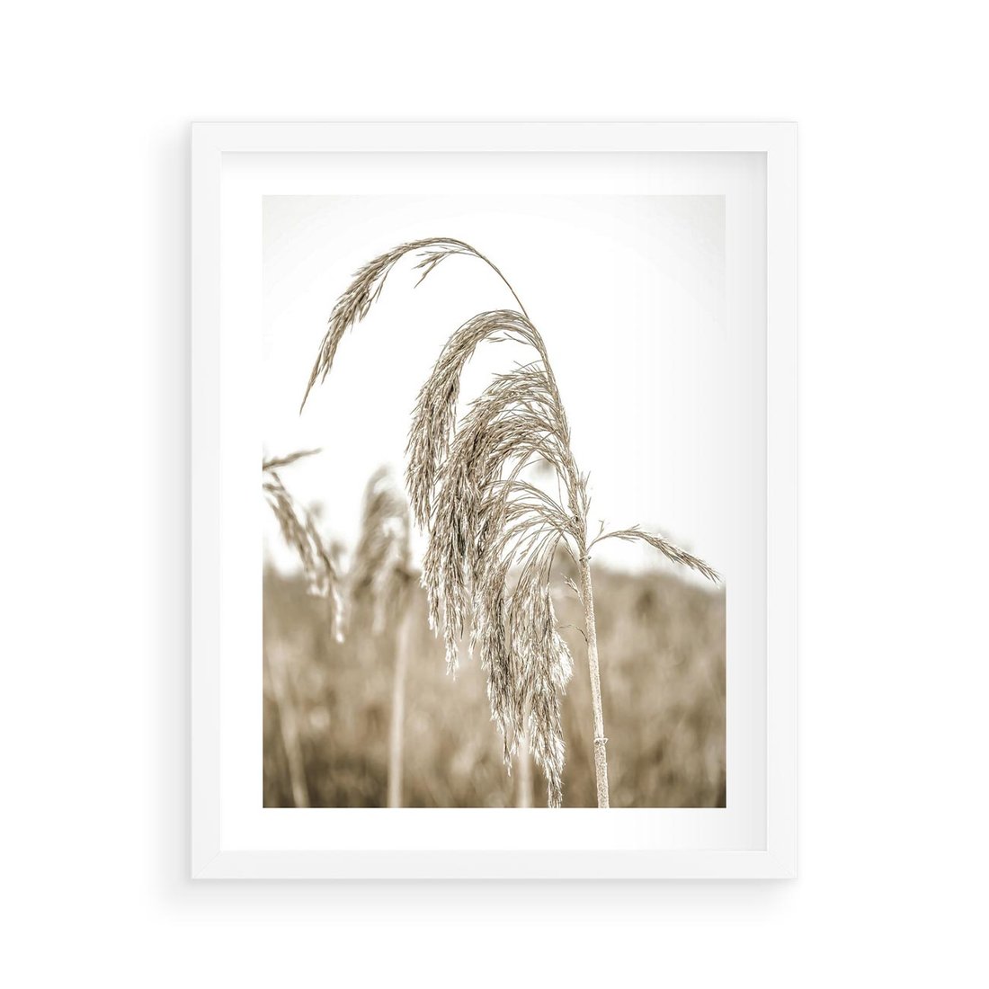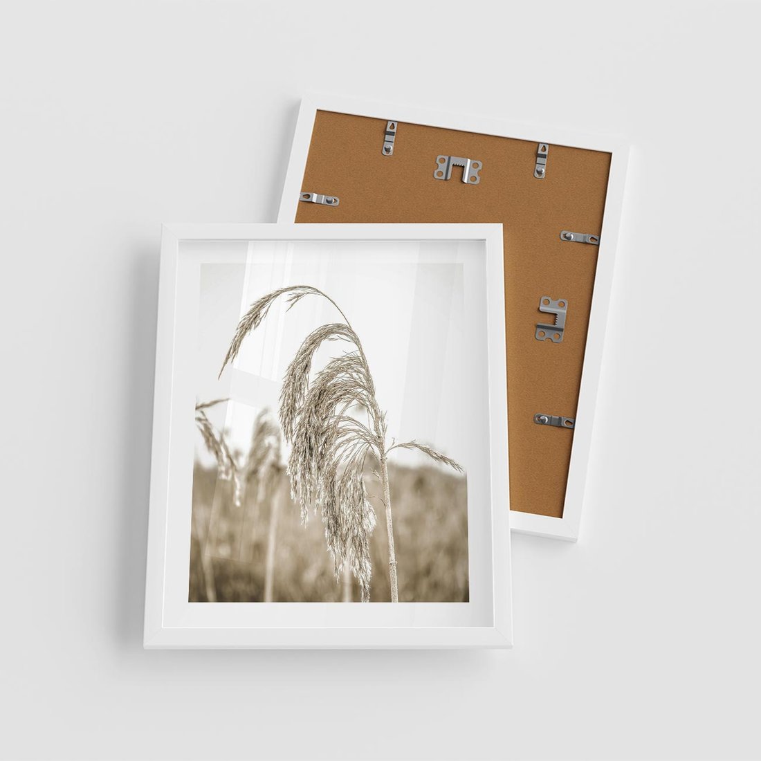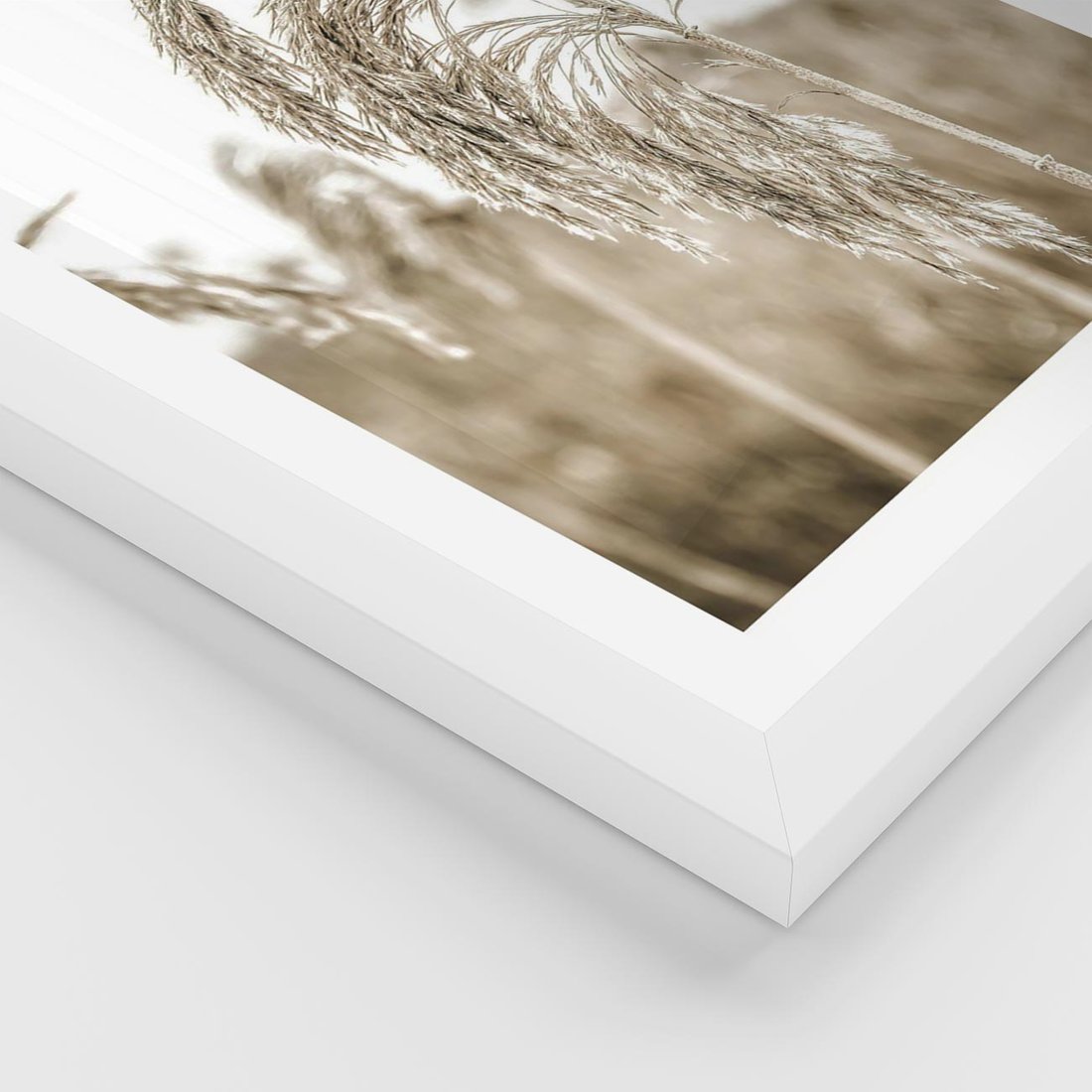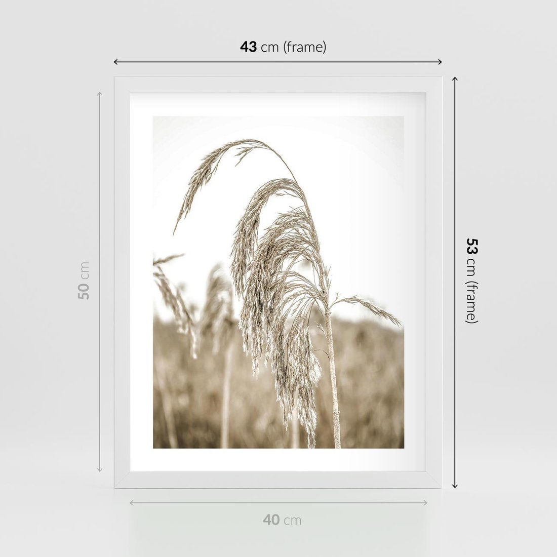 Plakat w ramie 40x50 - Ujęcie Suchych Traw - suche trawy, zbliżenie - rama biała