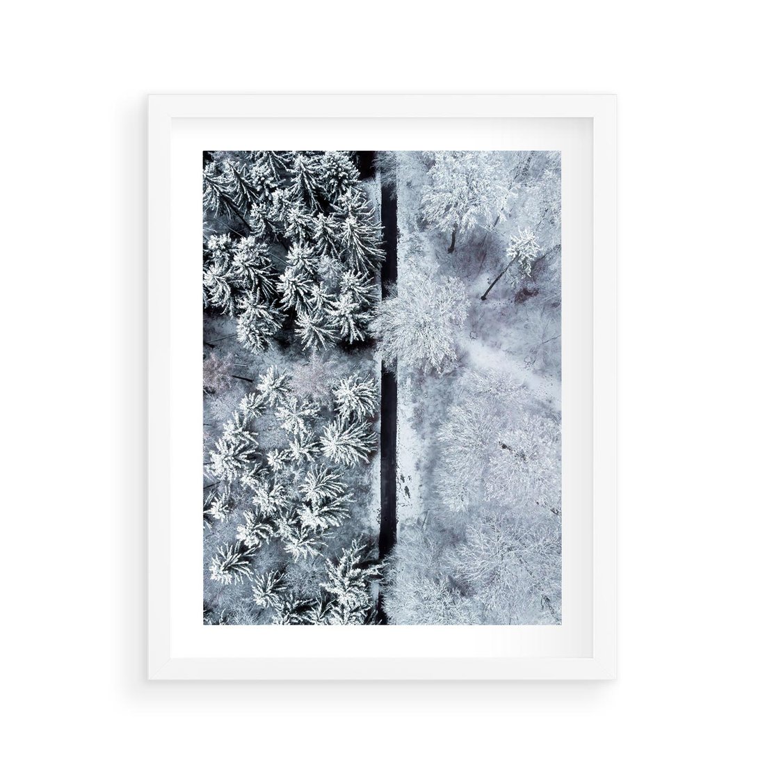 Plakat w ramie 40x50 - Ujęcie Zimowej Szosy - zima, śnieg - rama biała