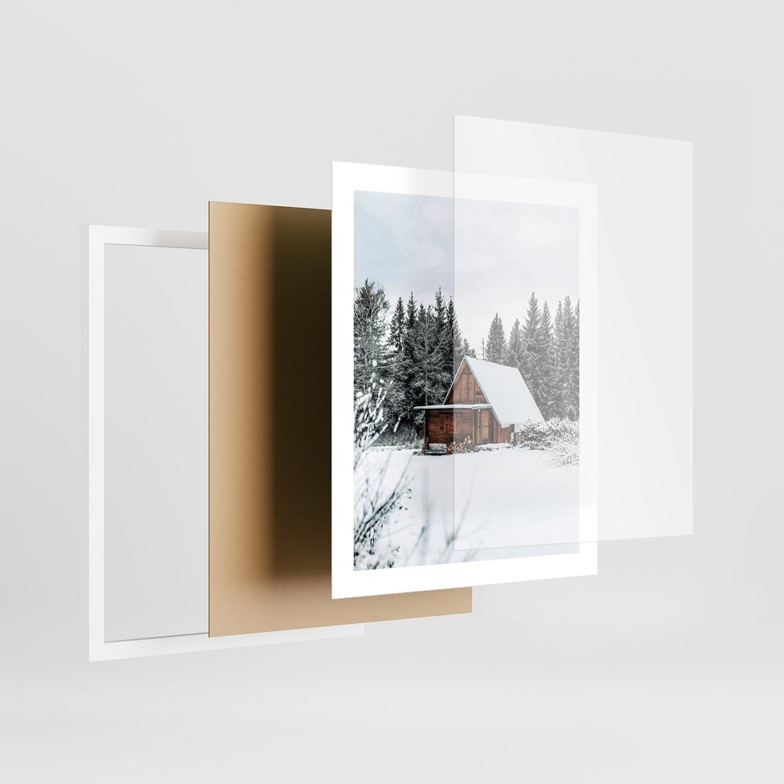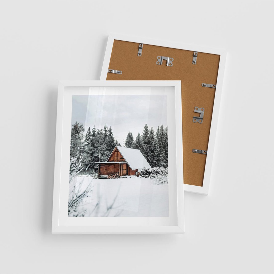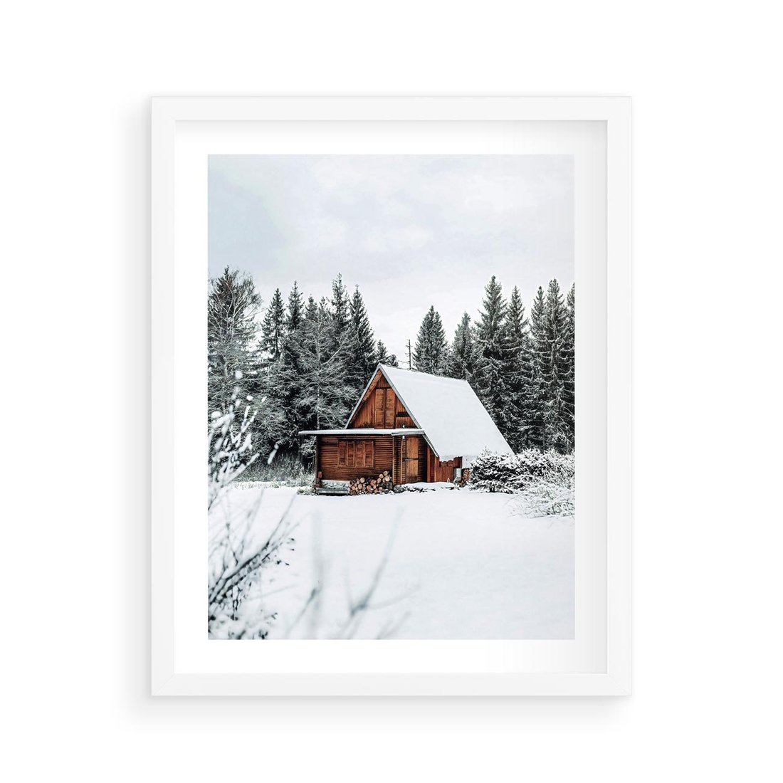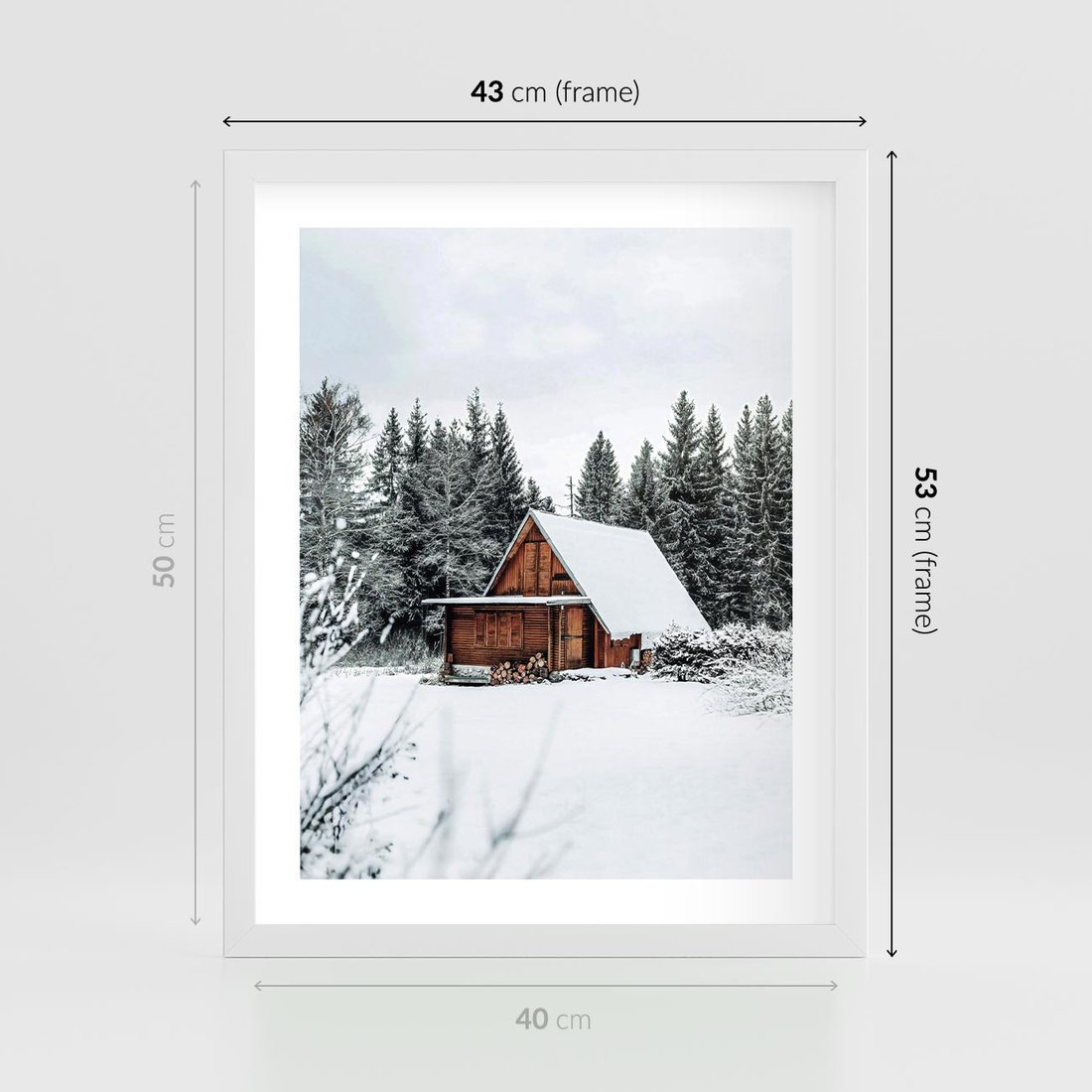Plakat w ramie 40x50 - Ujęcie zimy w Górach - domek w górach w zimie, śnieg - rama biała