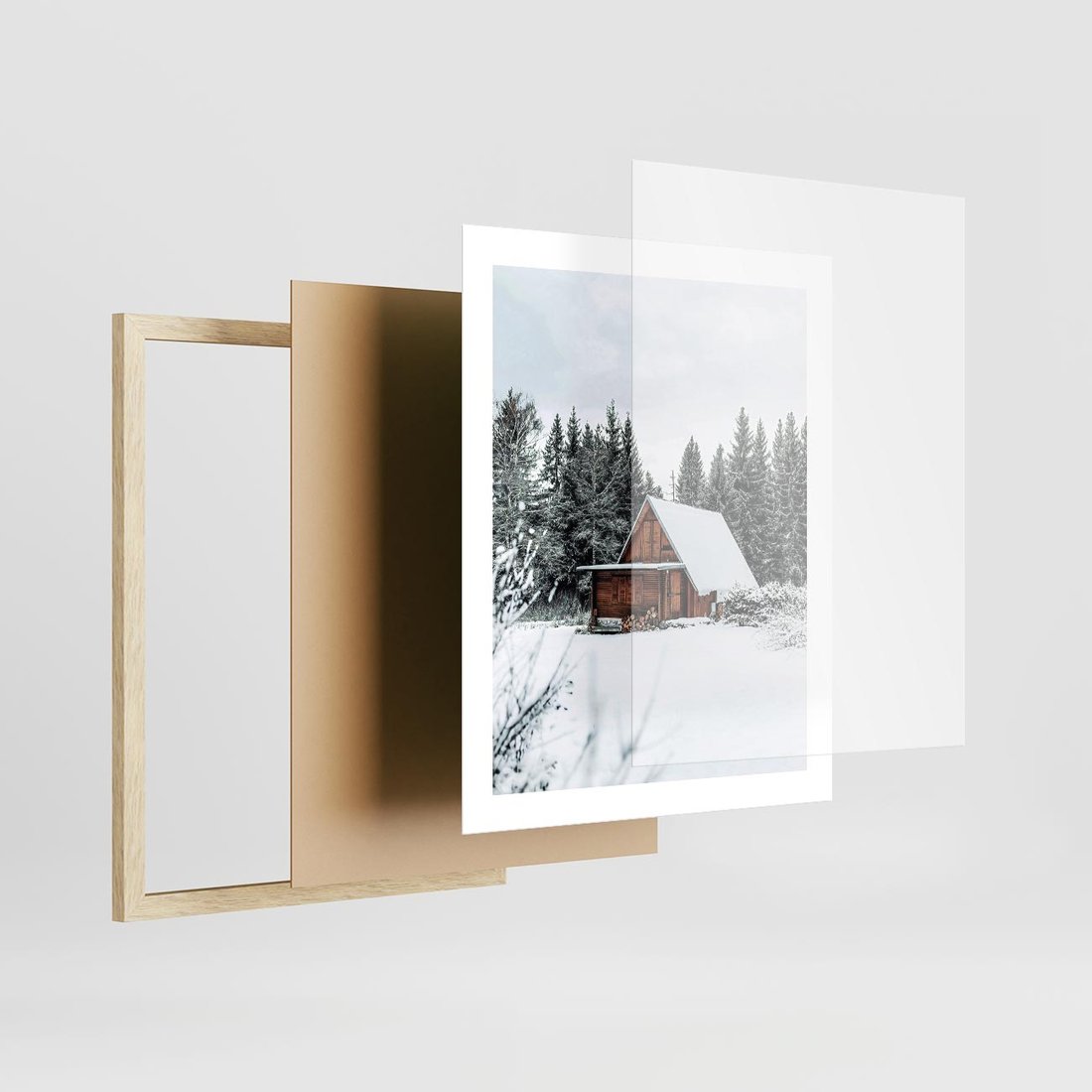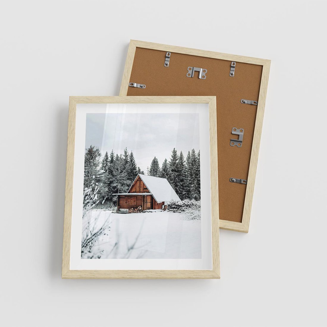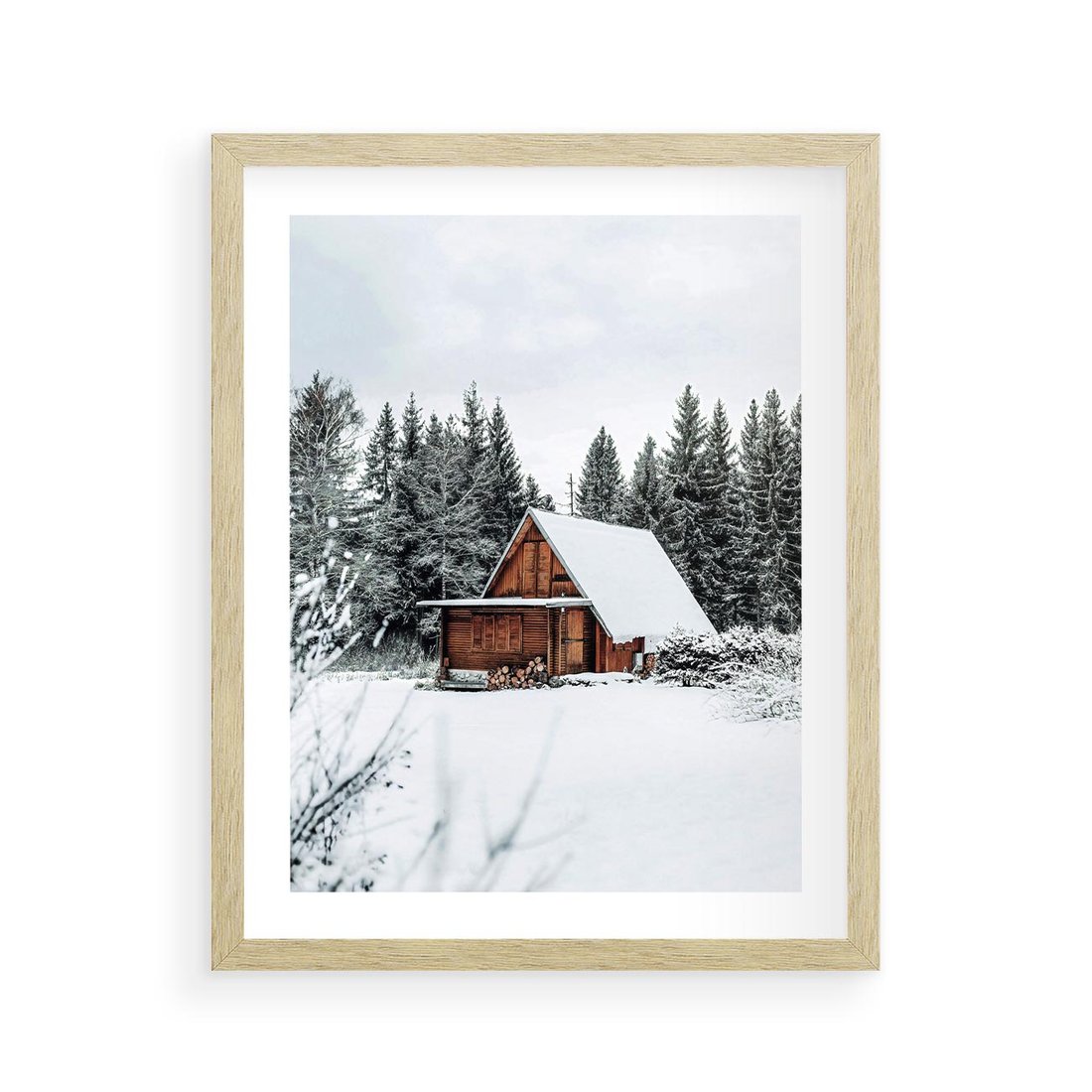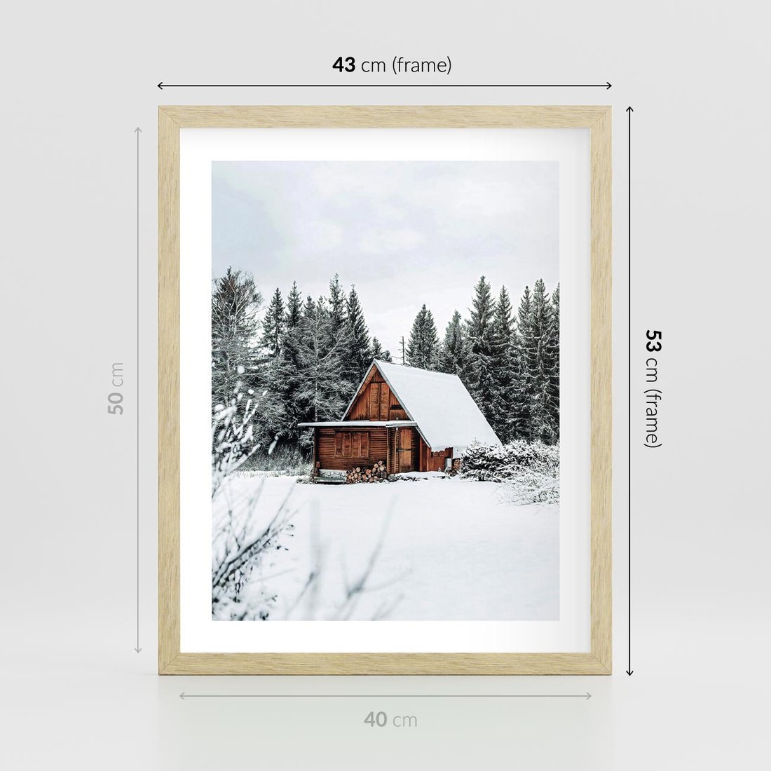 Plakat w ramie 40x50 - Ujęcie zimy w Górach - domek w górach w zimie, śnieg - rama drewno