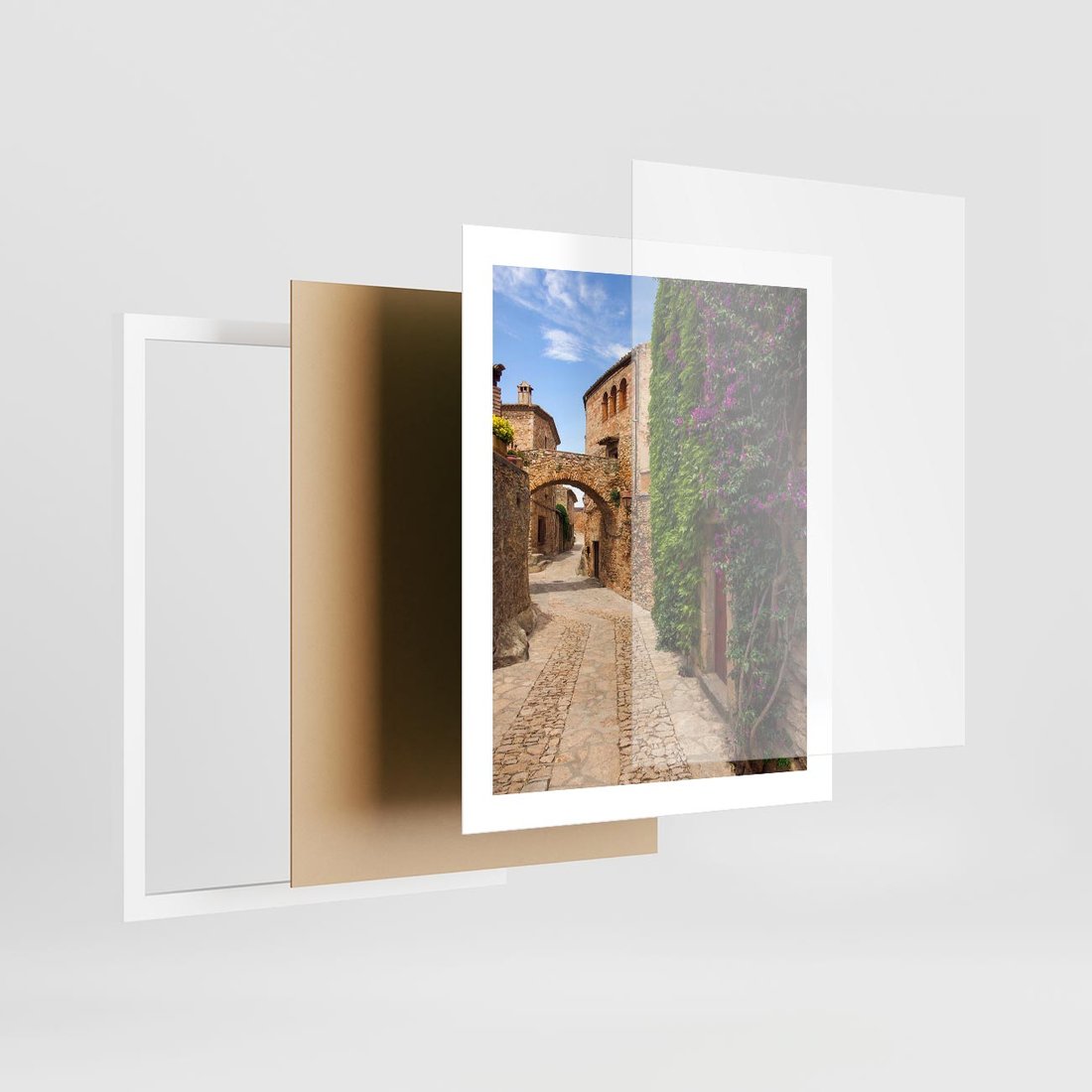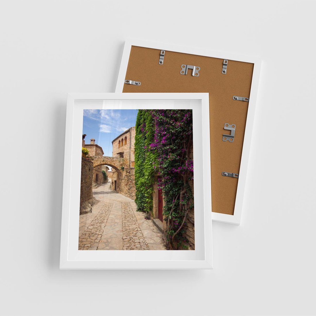 Plakat w ramie 40x50 - Uliczka pełna perspektywy i tajemnicy - uliczka, perspektywa - rama biała