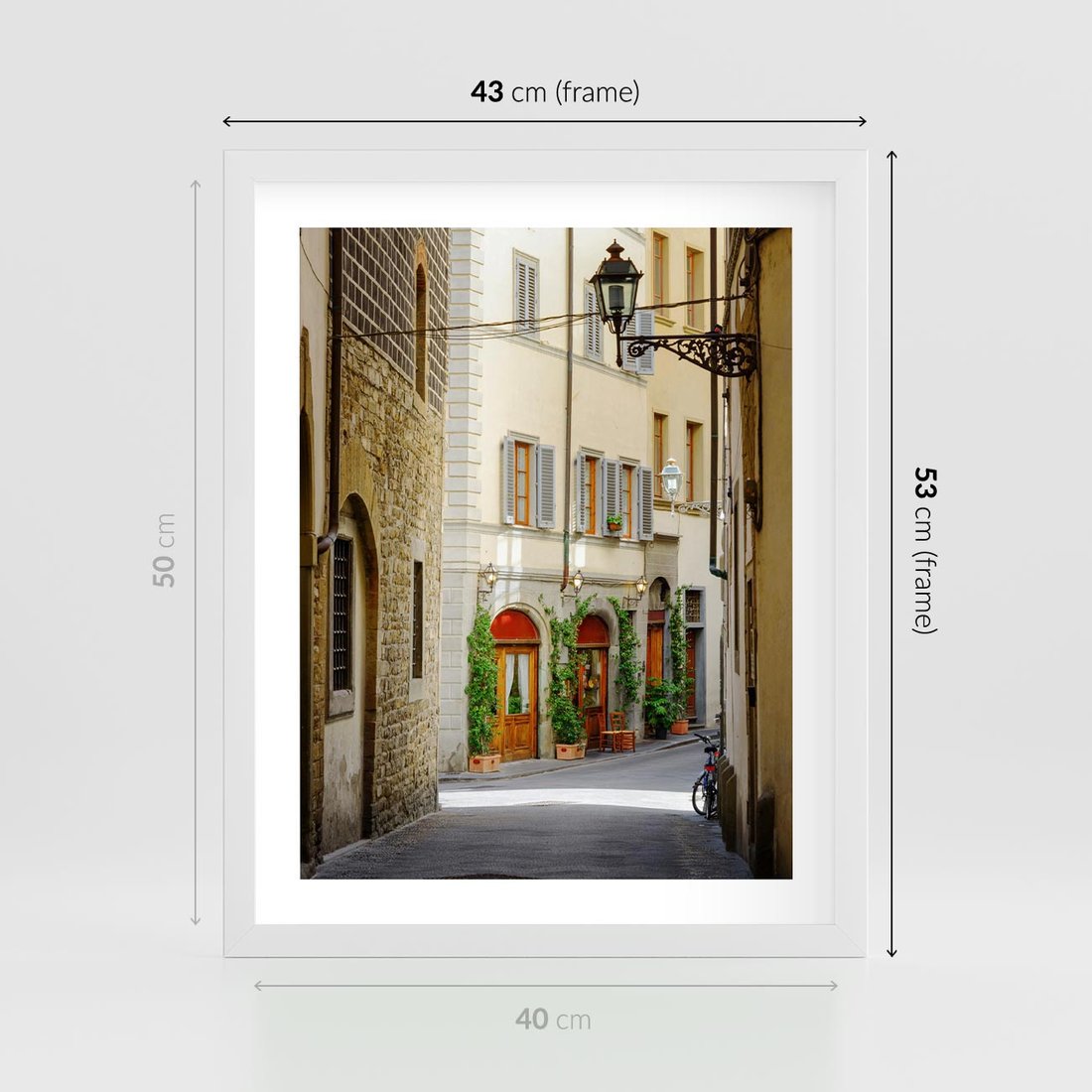 Plakat w ramie 40x50 - Uliczka: perspektywa miejskiego krajobrazu - uliczka, perspektywa - rama biała